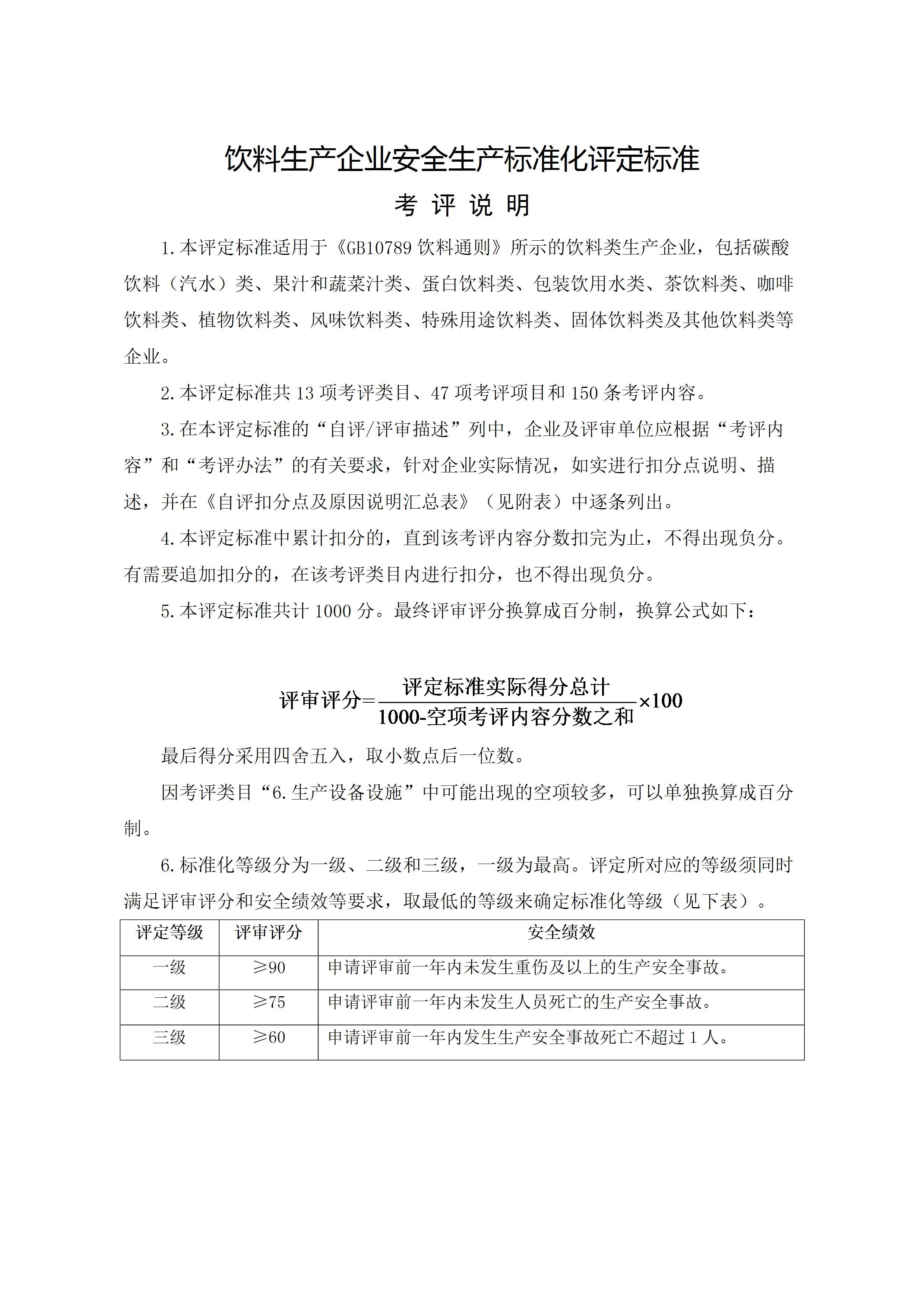 / 饮料生产企业安全生产标准化评定标准[文档版]