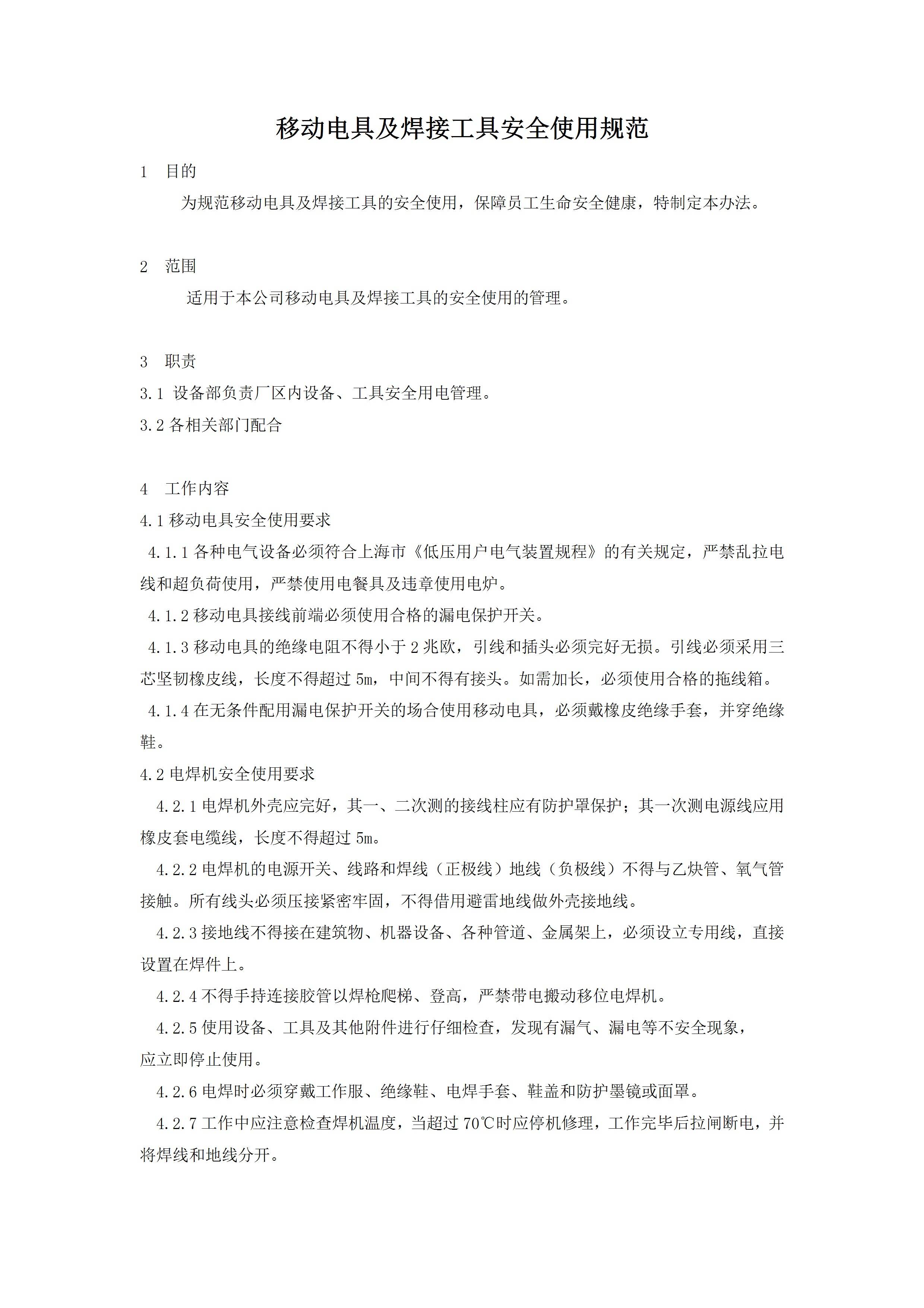 / 移动电具及焊接工具安全使用规范模板[文档版]