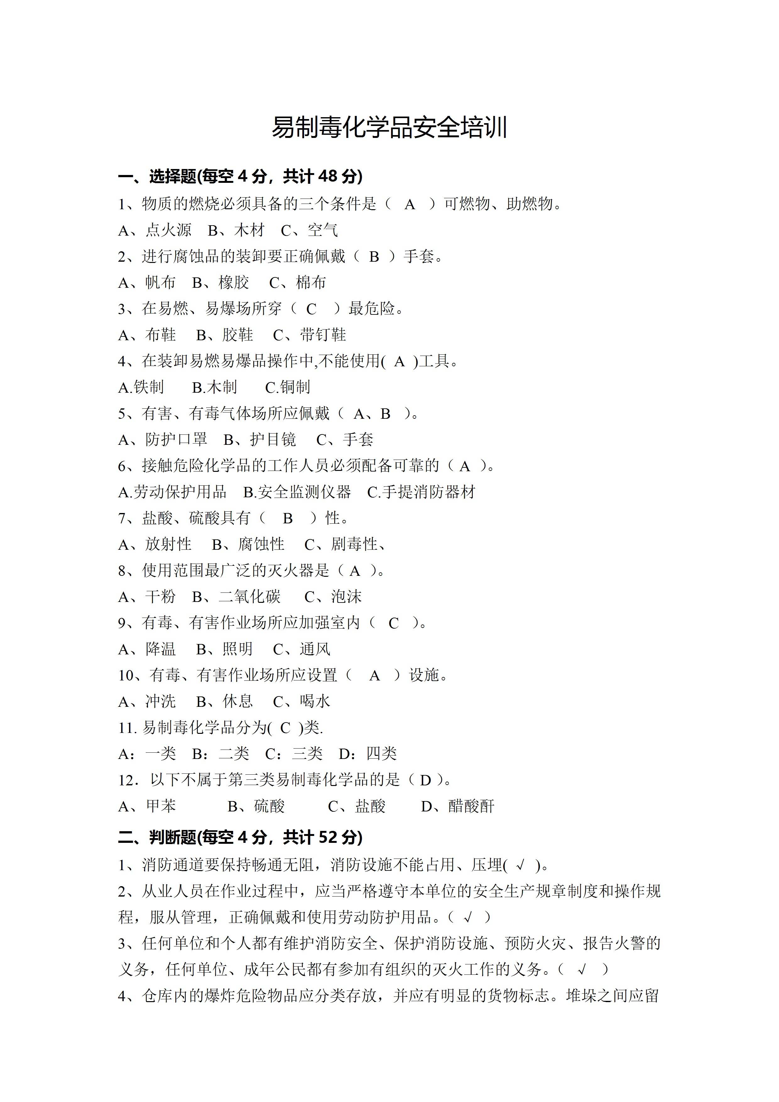 / 易制毒化学品安全培训试卷答案[文档版]