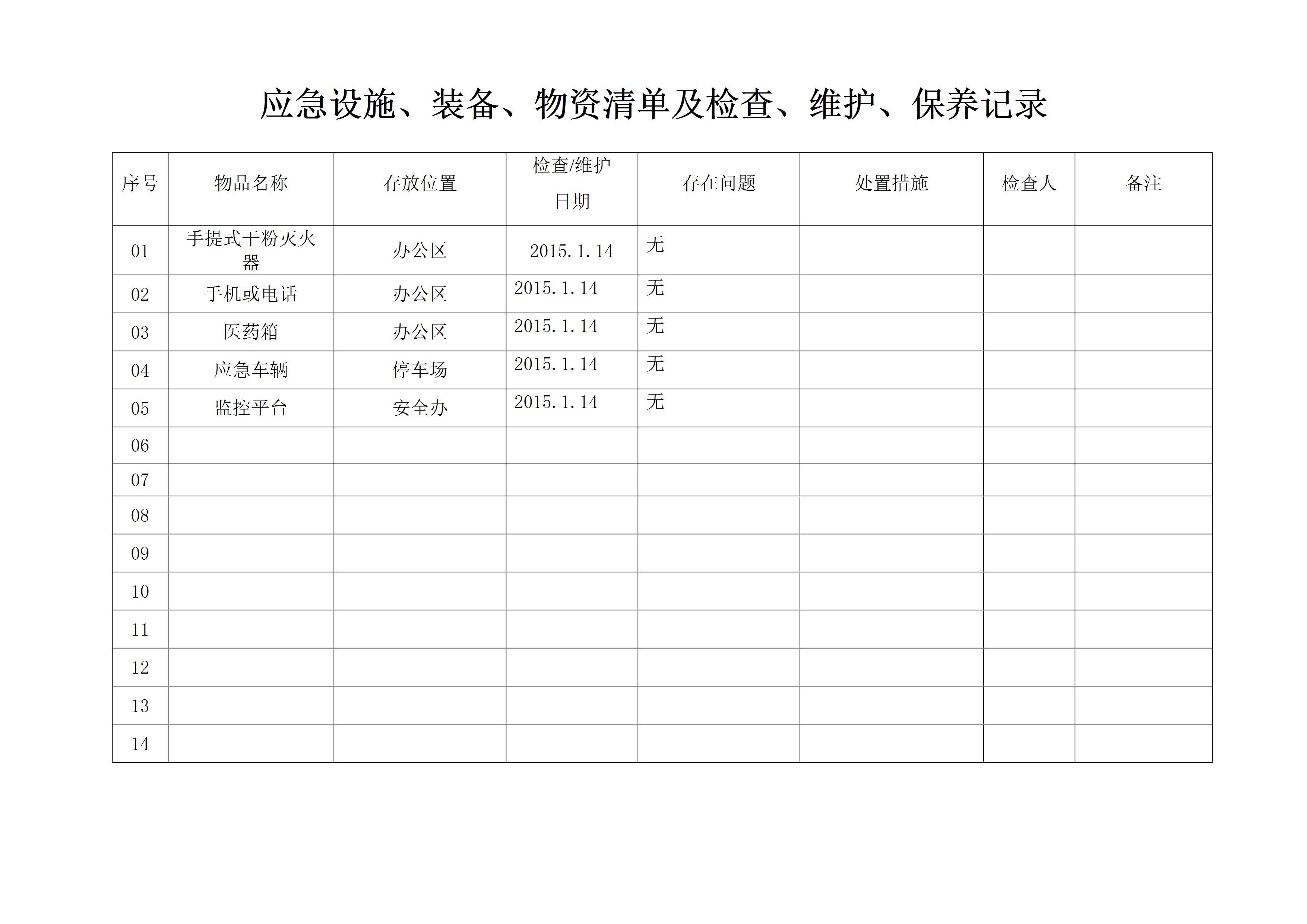 应急设施,装备,物资清单及检查,维护,保养记录[文档版]