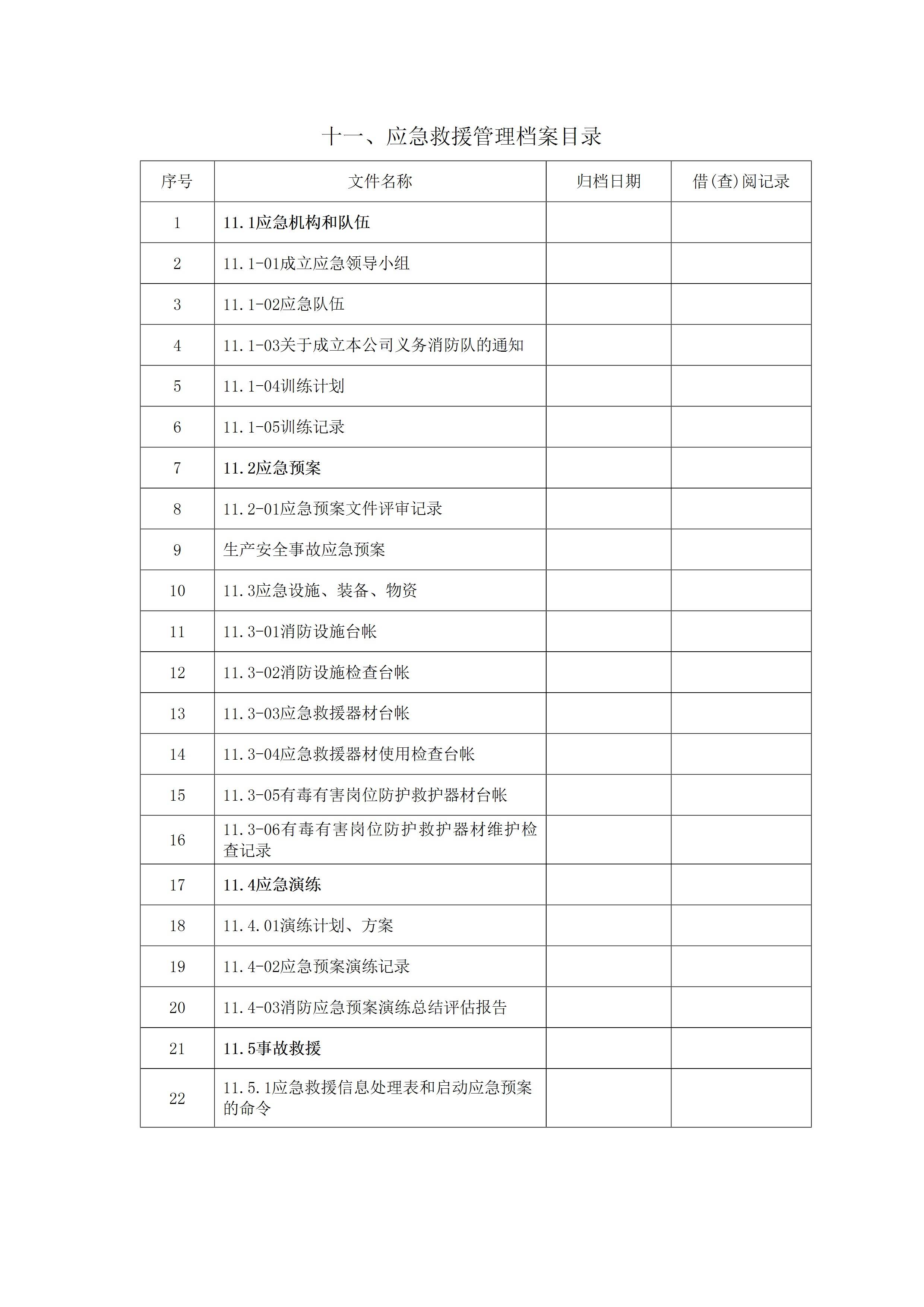 应急救援管理档案目录[文档版]