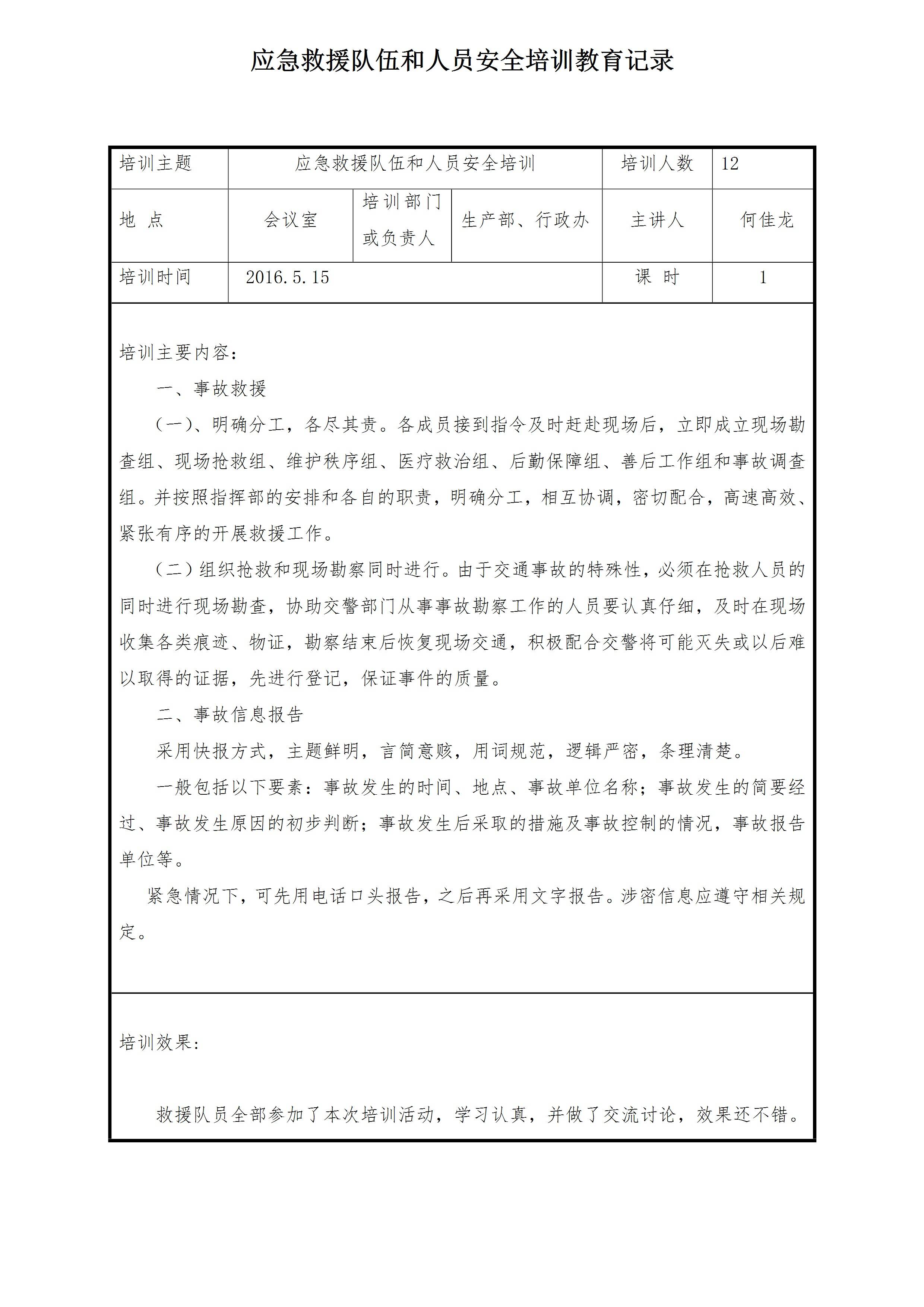 应急救援人员培训记录表[文档版]