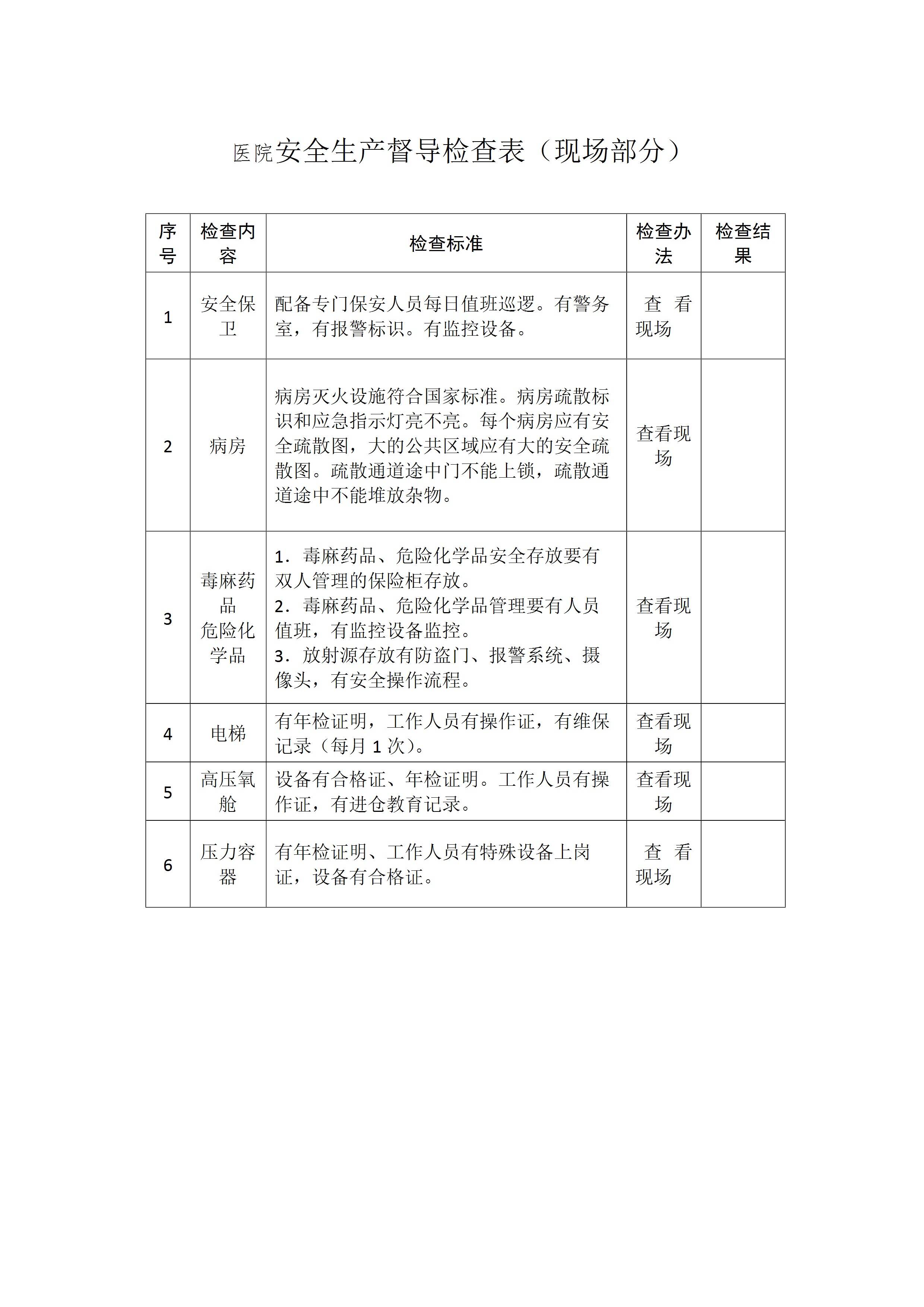 医院安全生产督导检查表[文档版]