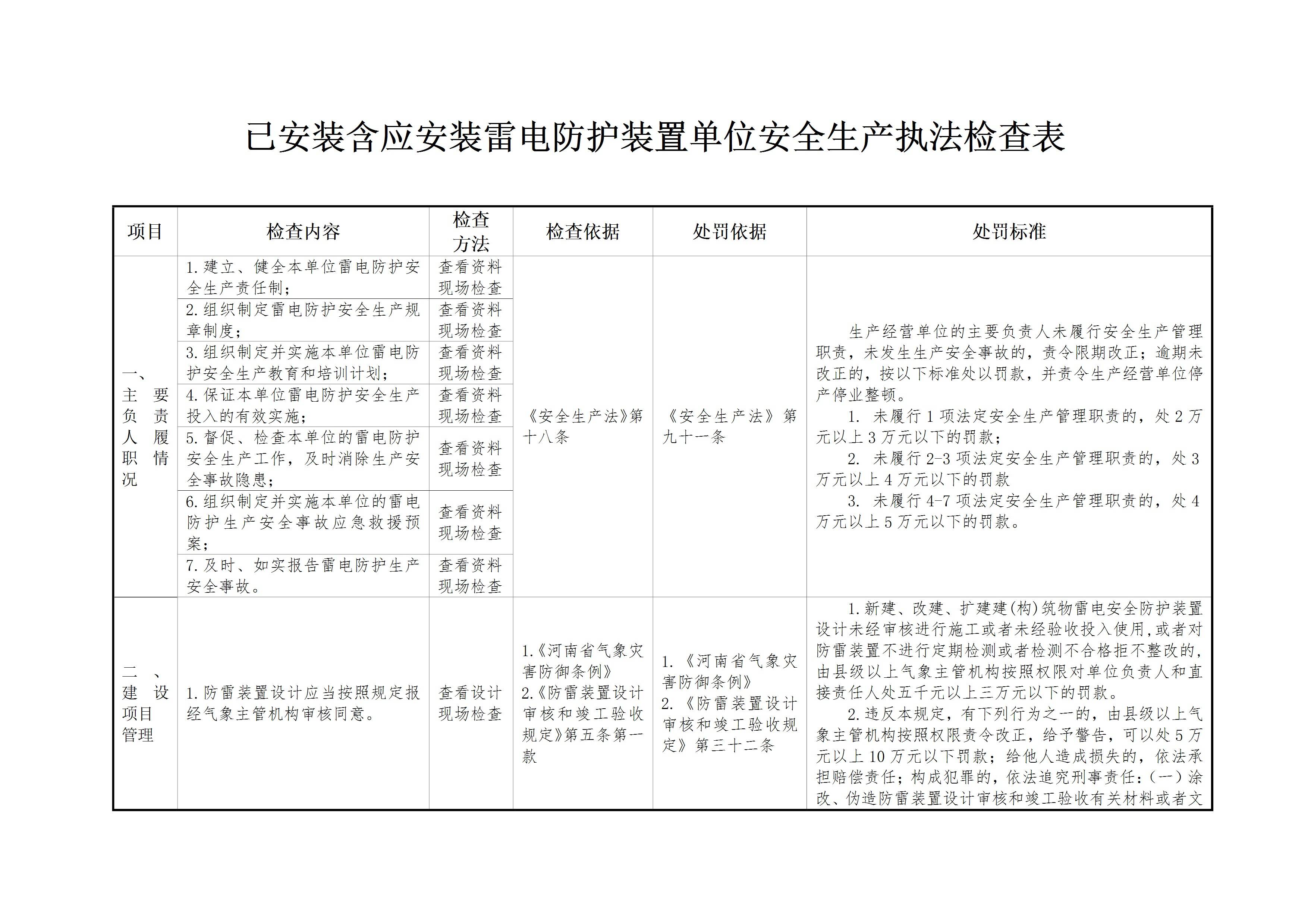 / 已安装含应安装雷电防护装置单位安全生产执法检查表[文档版]