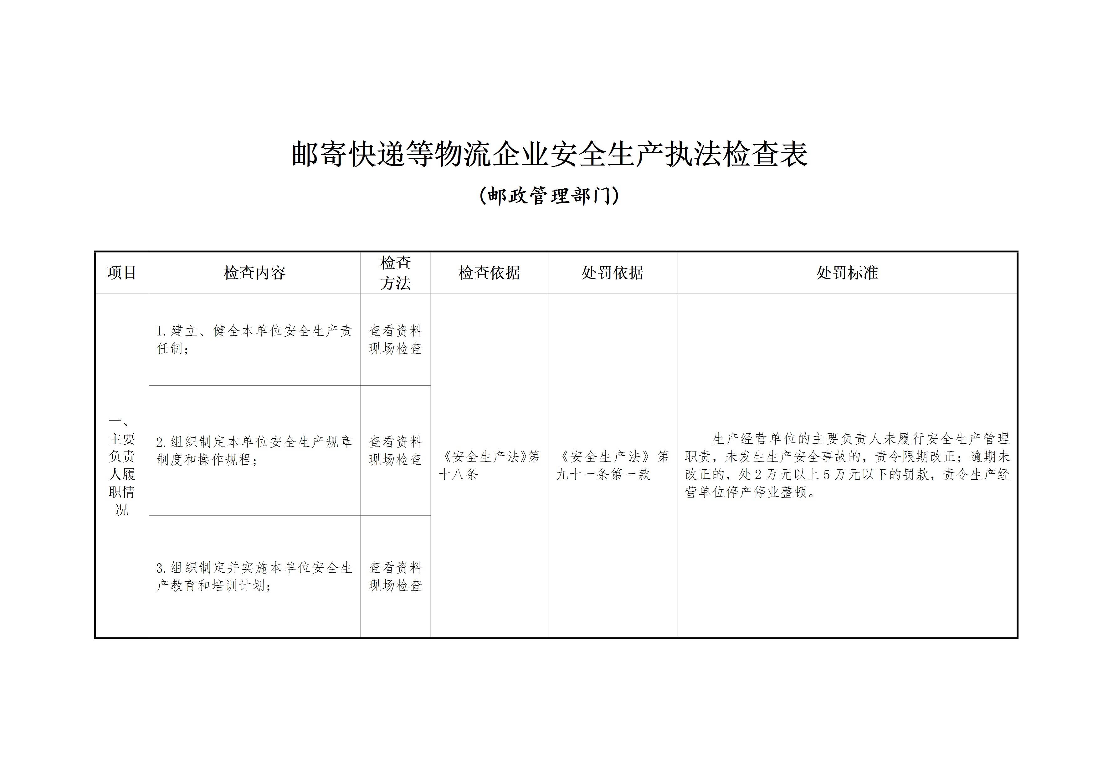 / 邮寄快递等物流企业安全生产执法检查表[文档]