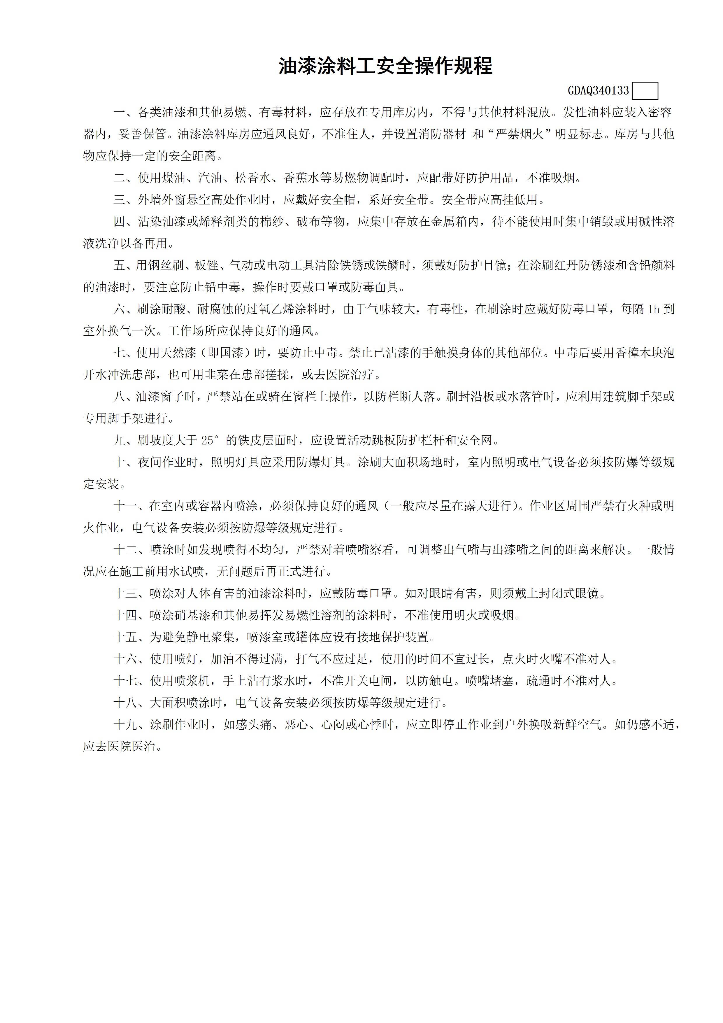 / 油漆涂料工安全操作规程GDAQ340133[文档]