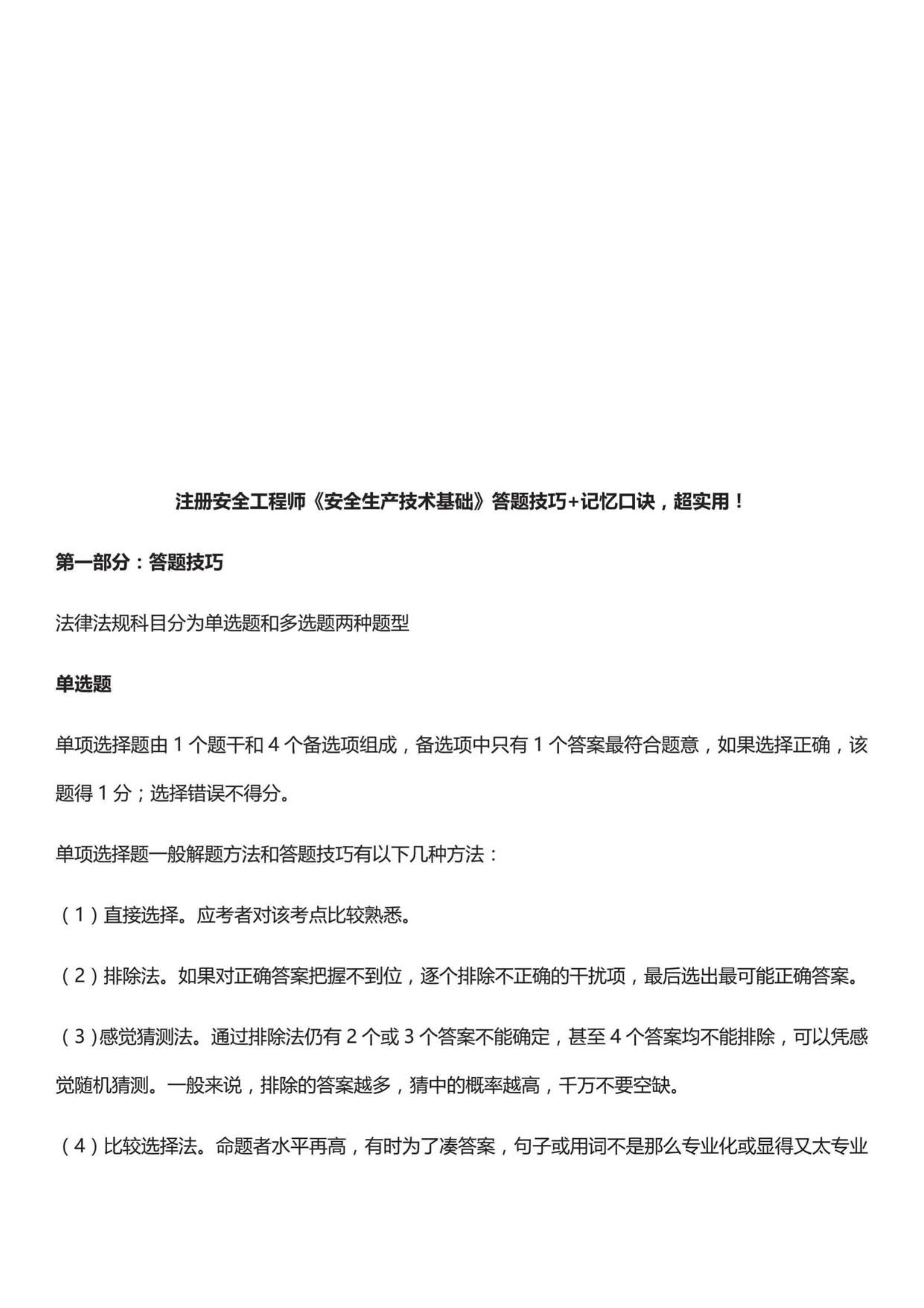 [考试技巧]安全《生产技术》答题技巧-记忆口诀10页[PDF]