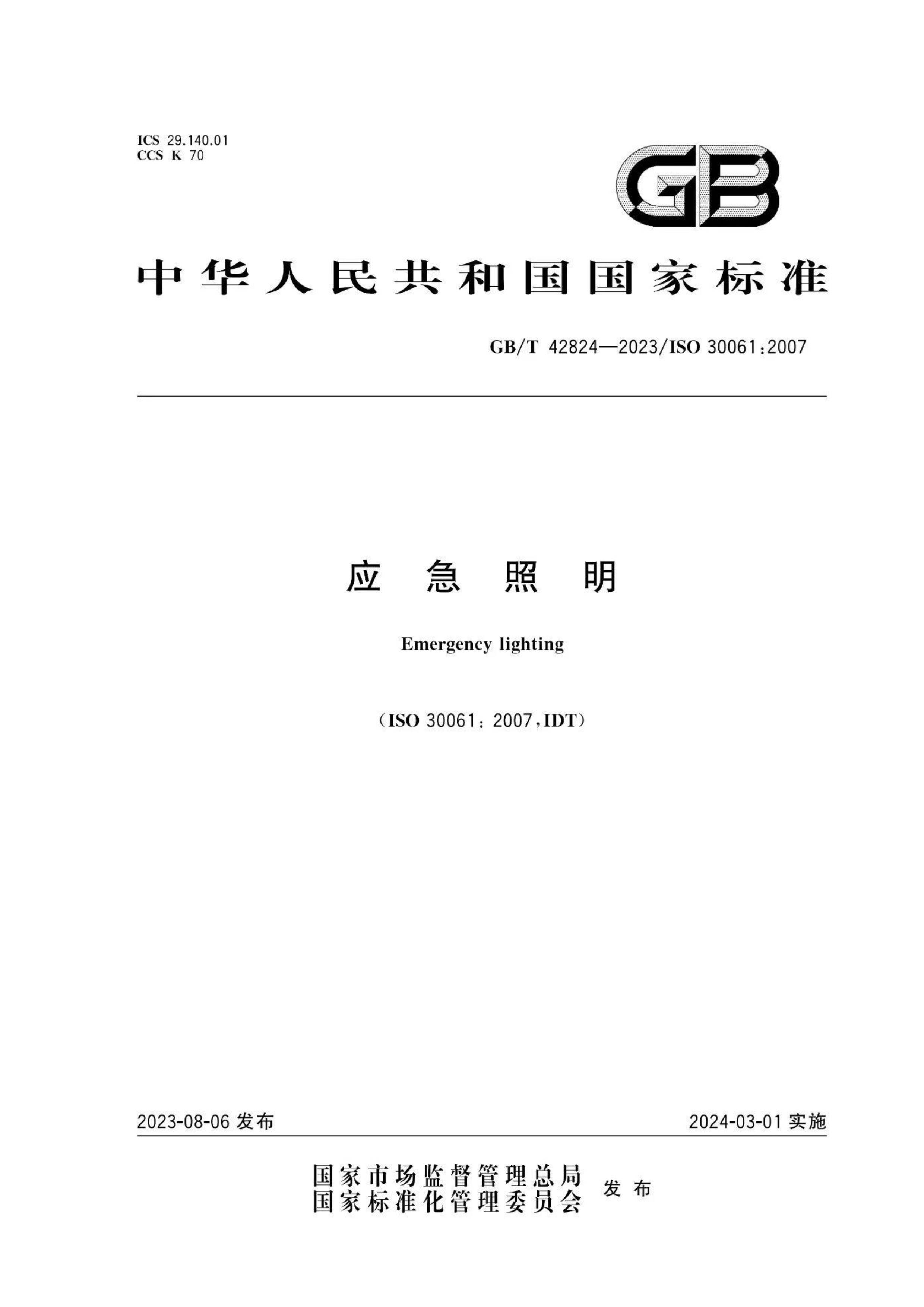 / 3月1日实施新标准GBT42824-2023《应急照明》[PDF]