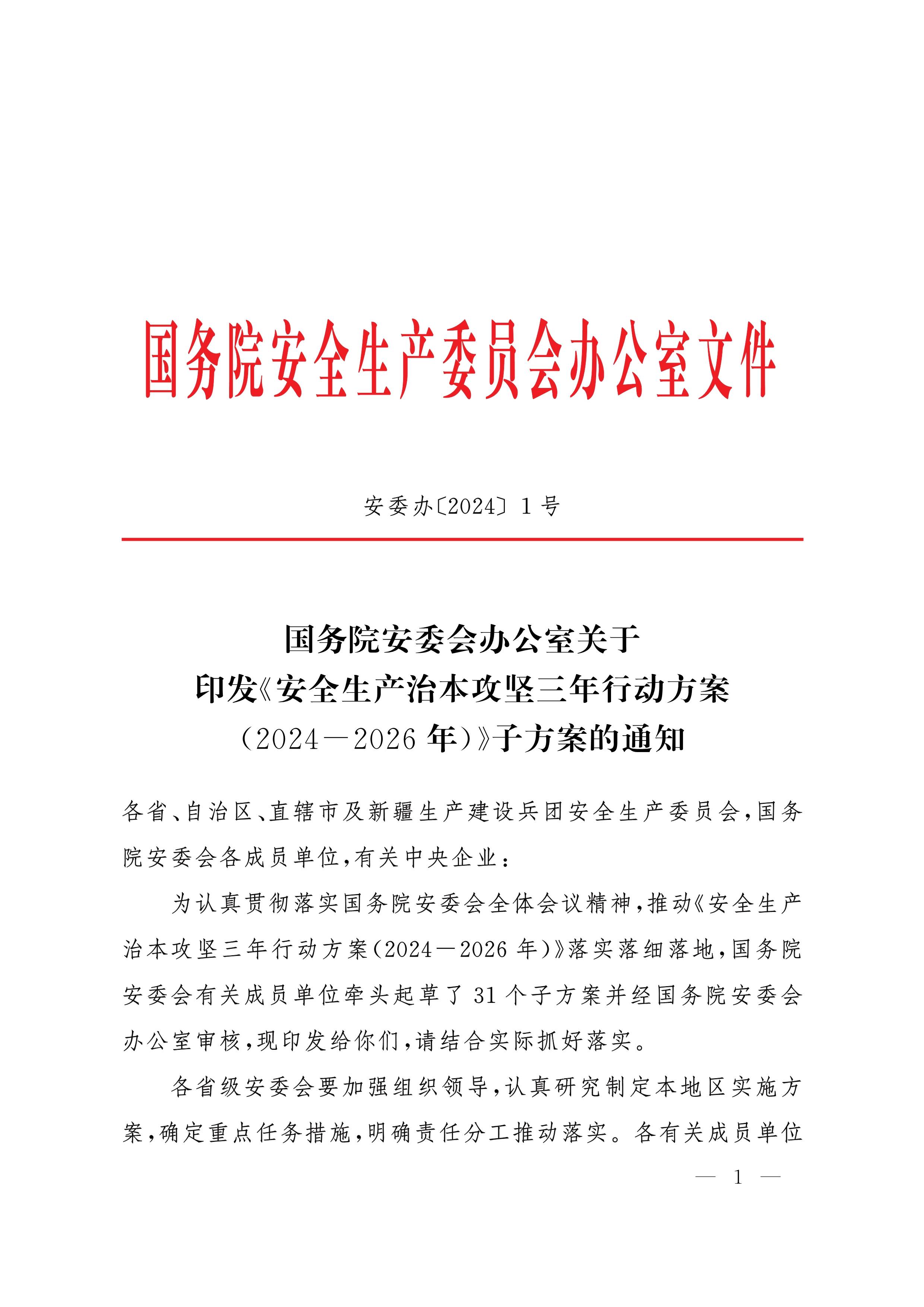 31个子方案公布《安全生产治本攻坚三年行动方案》2024-2026[PDF]