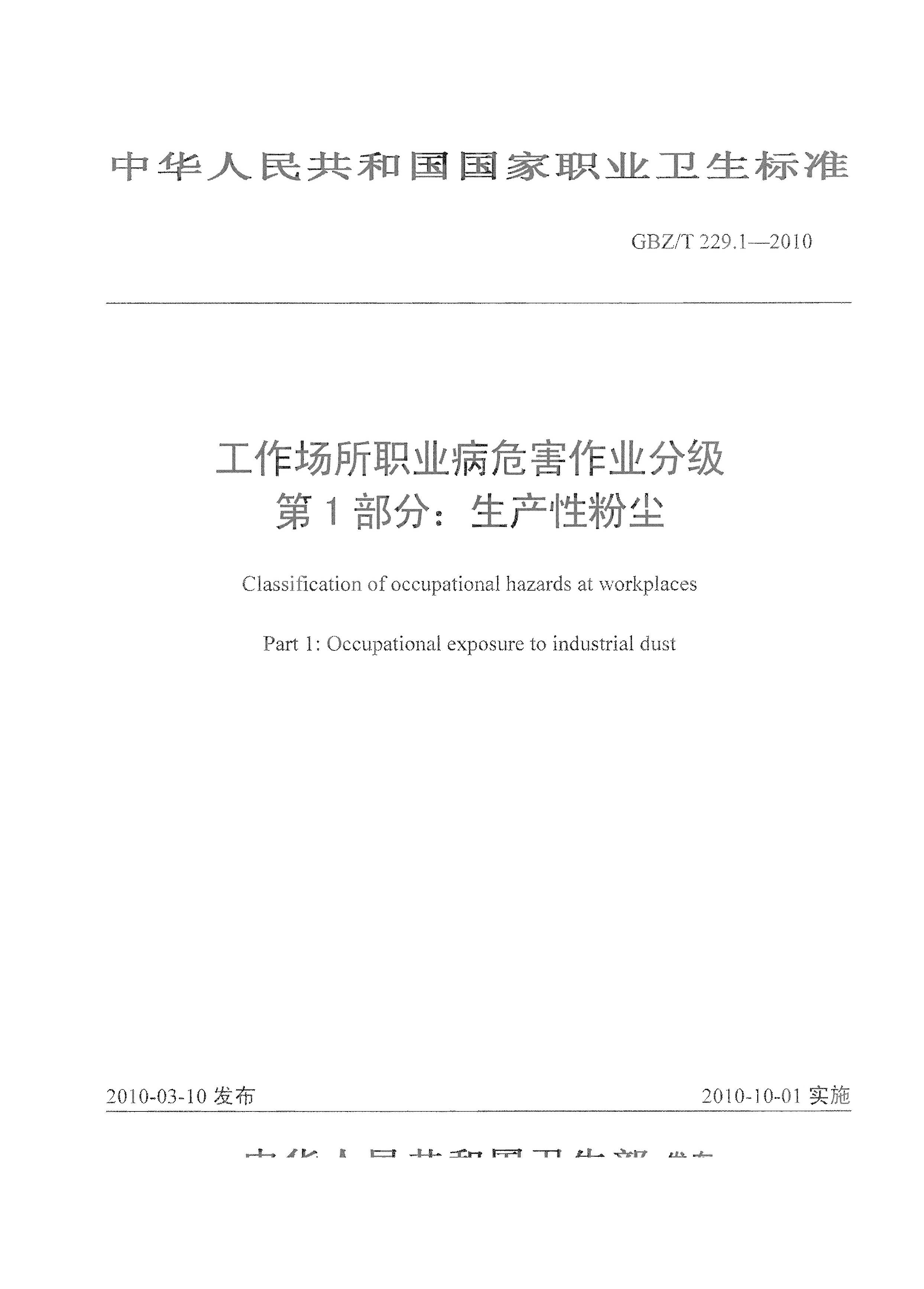 2010工作场所职业病危害作业分级-生产性粉尘[PDF]