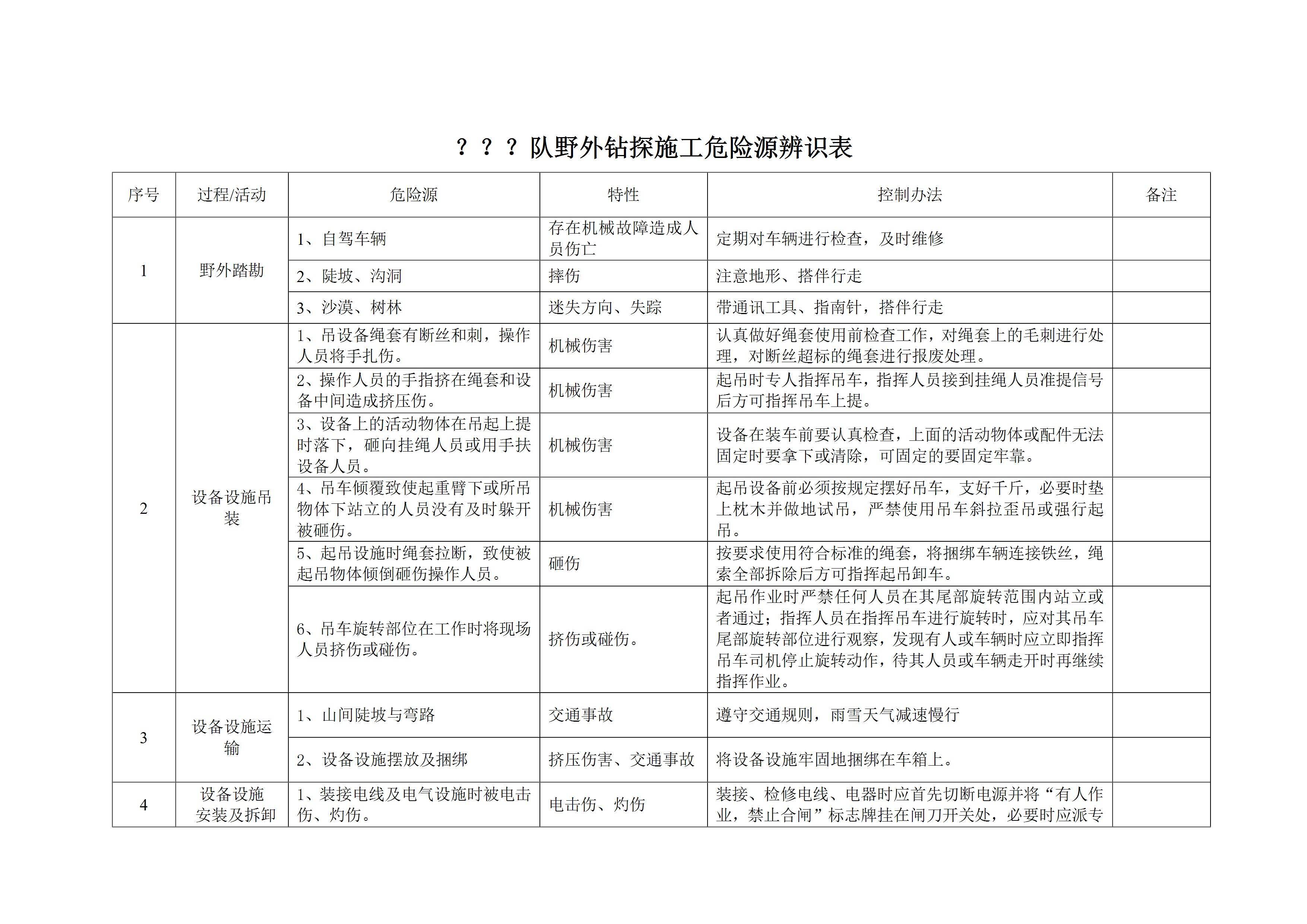 / 钻探施工危险源辨识及风险评价表[文档]