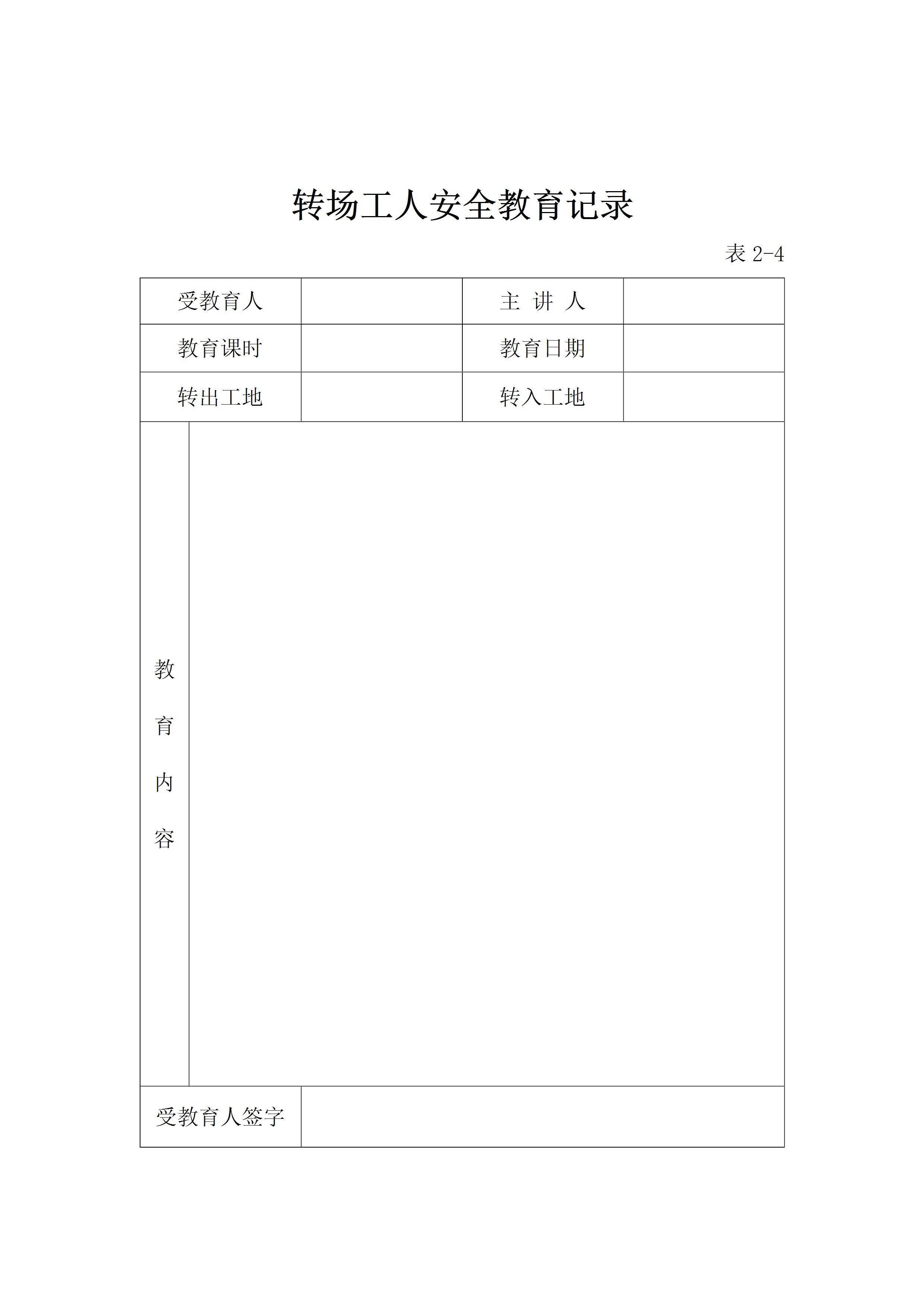 / 转场工人安全教育记录[文档]