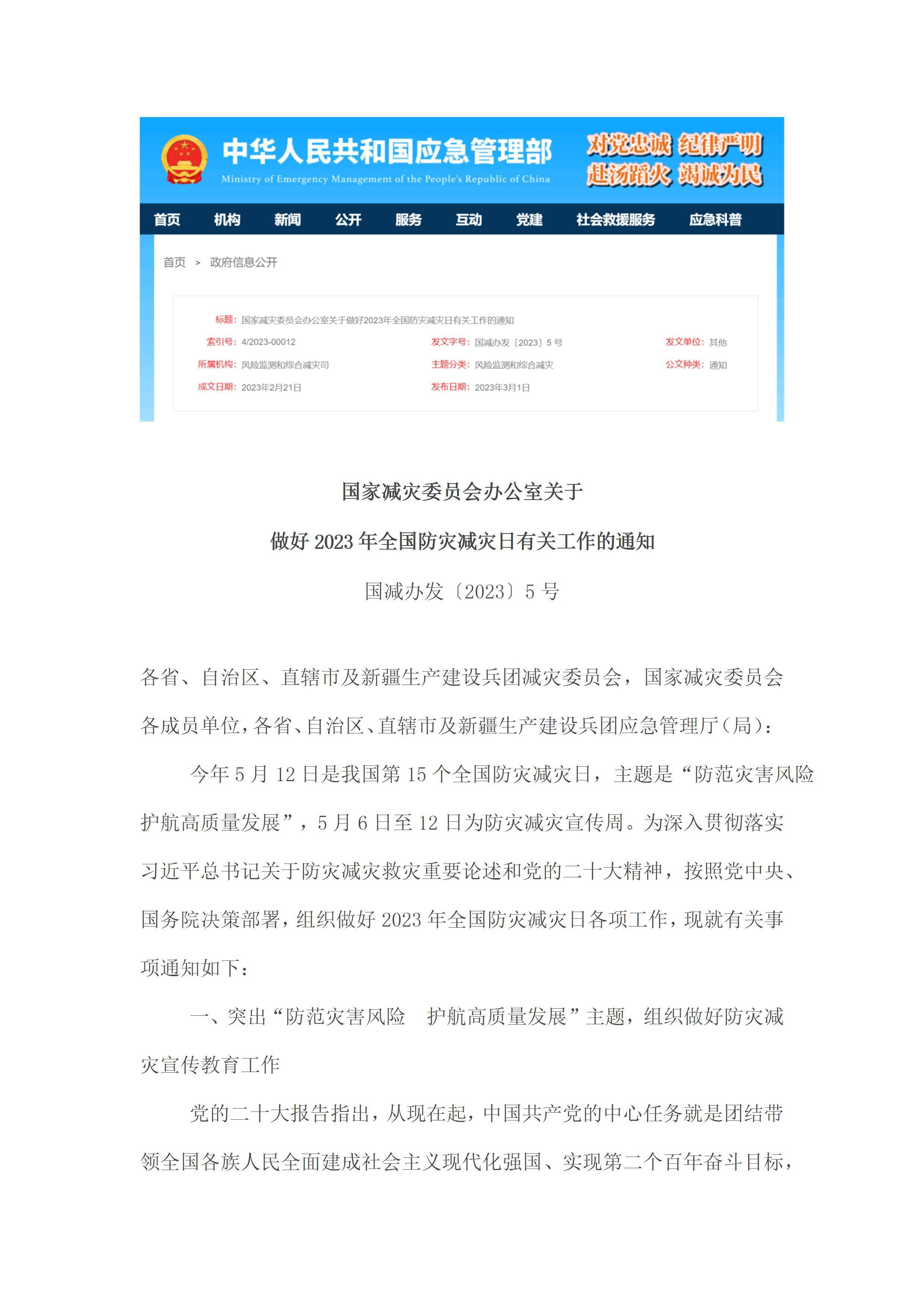 / 做好2023年全国防灾减灾日有关工作的通知[文档]