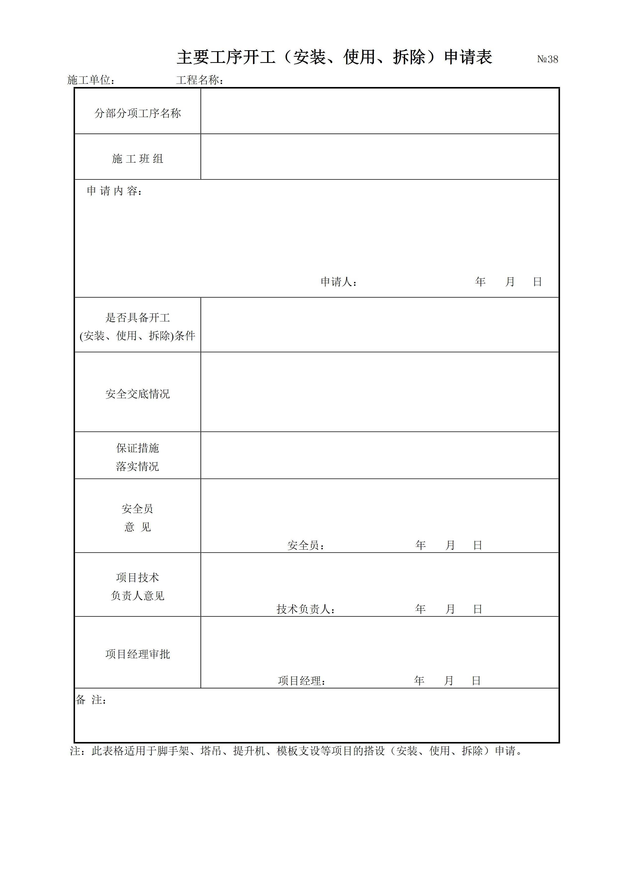 主要工序开工(安装,使用,拆除)申请表[文档]
