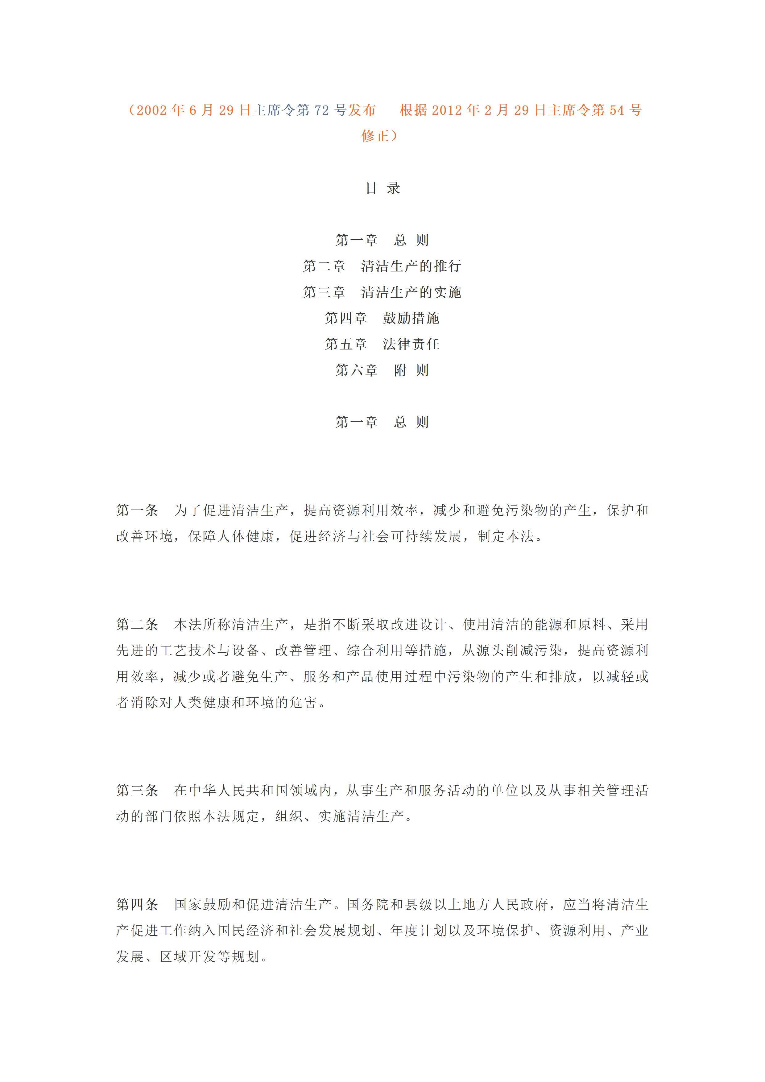 / 中华人民共和国清洁生产促进法[文档]