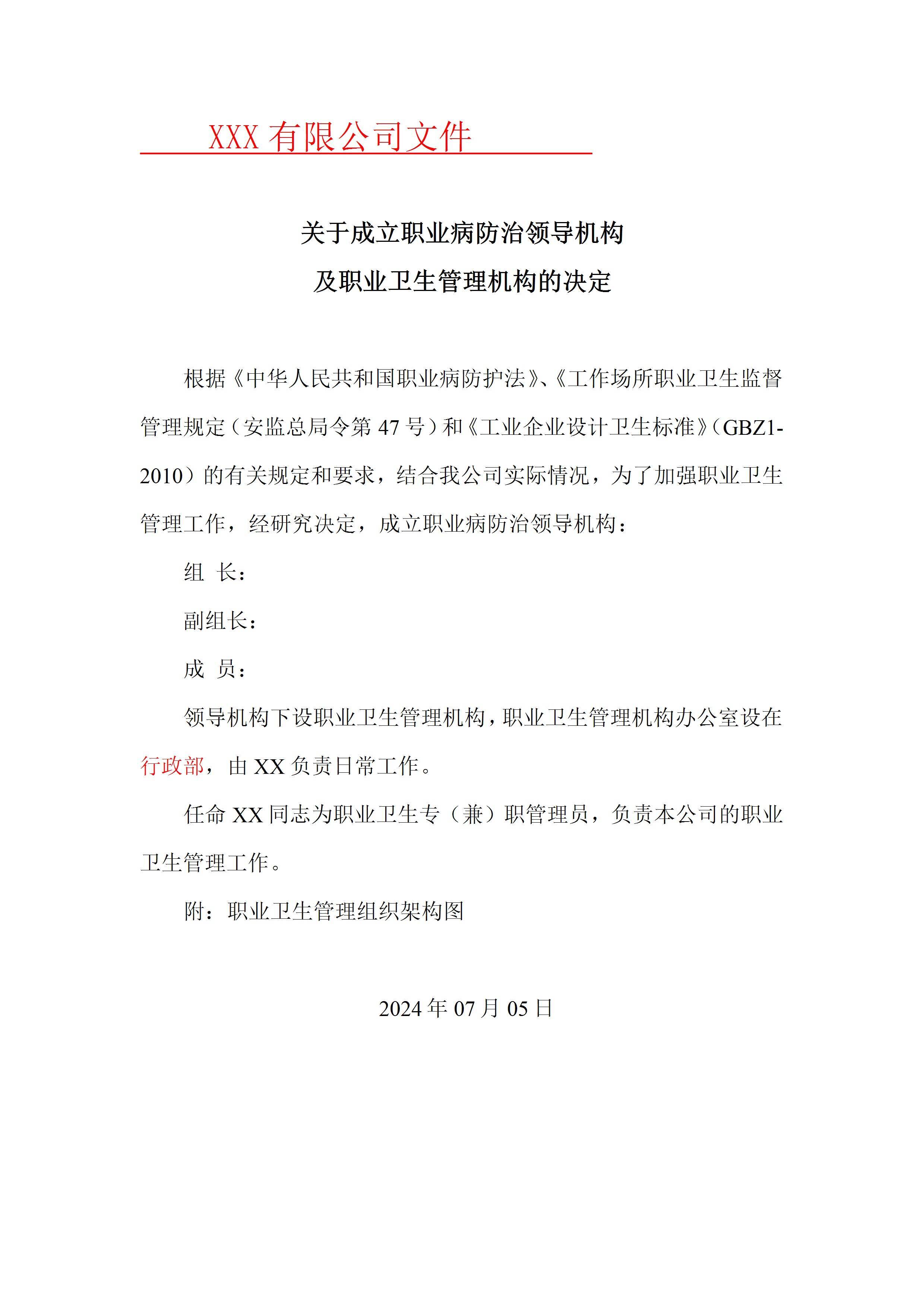职业病防治领导机构及职业卫生管理机构成立文件[文档]