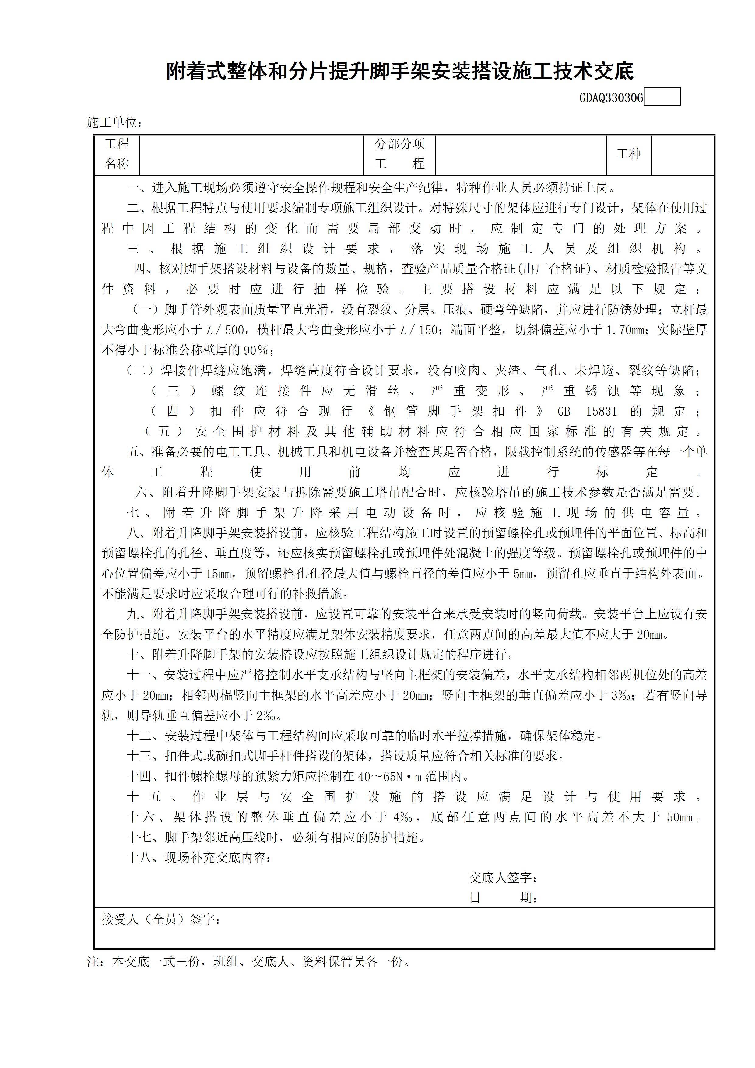 / 整体和分片提升手架安装搭设施工技术交底GDAQ330306[文档]
