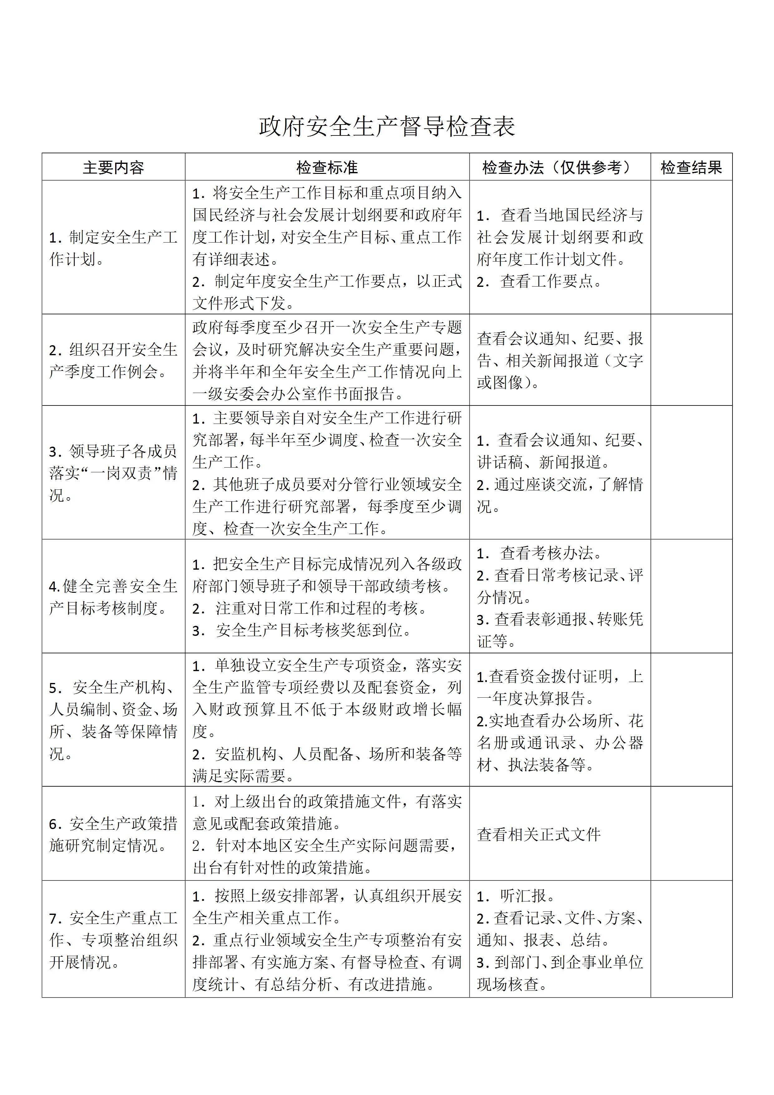 / 政府安全生产督导检查表[文档]