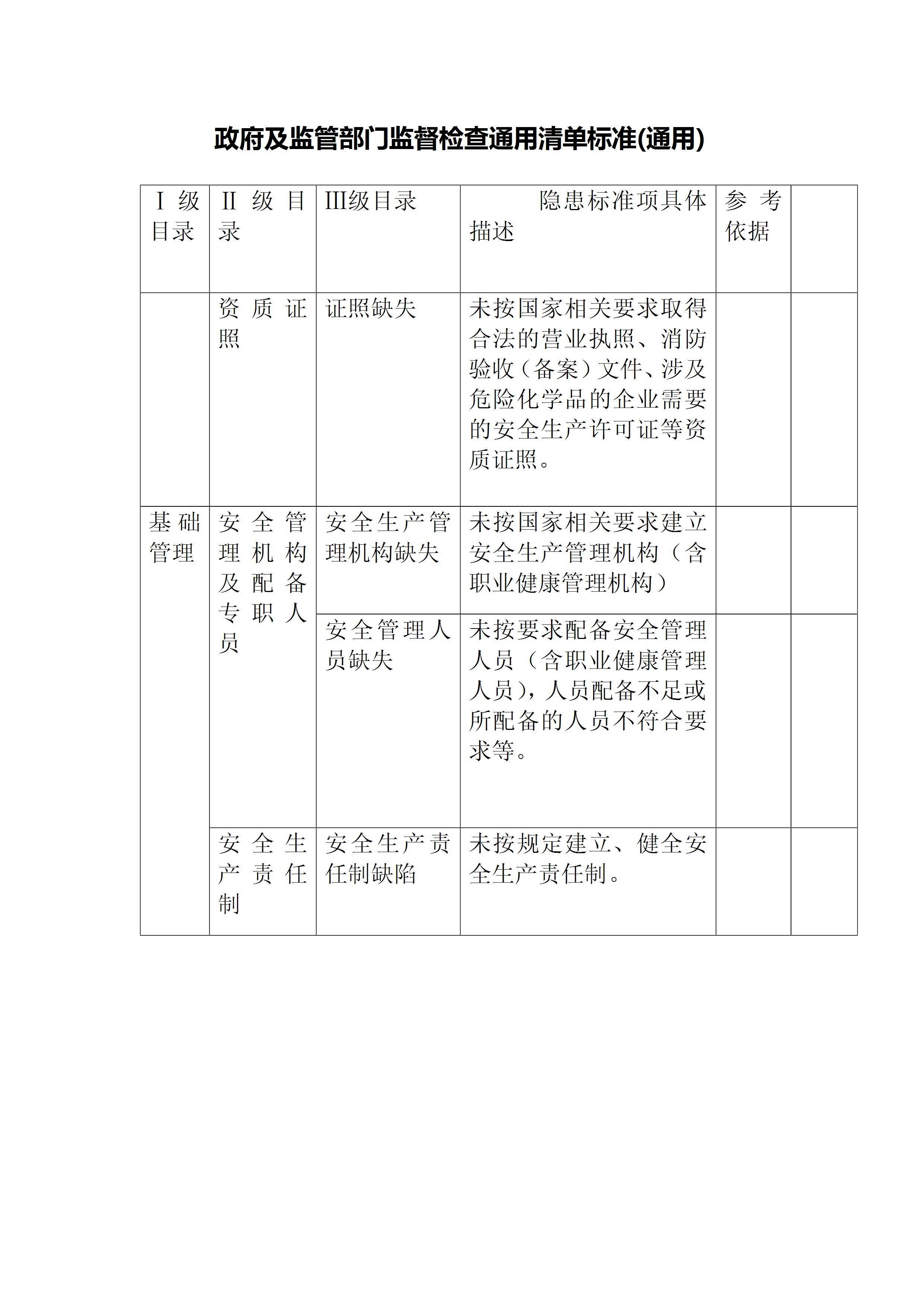 / 政府及监管部门监督检查通用清单标准(通用)(缺依据)[文档]