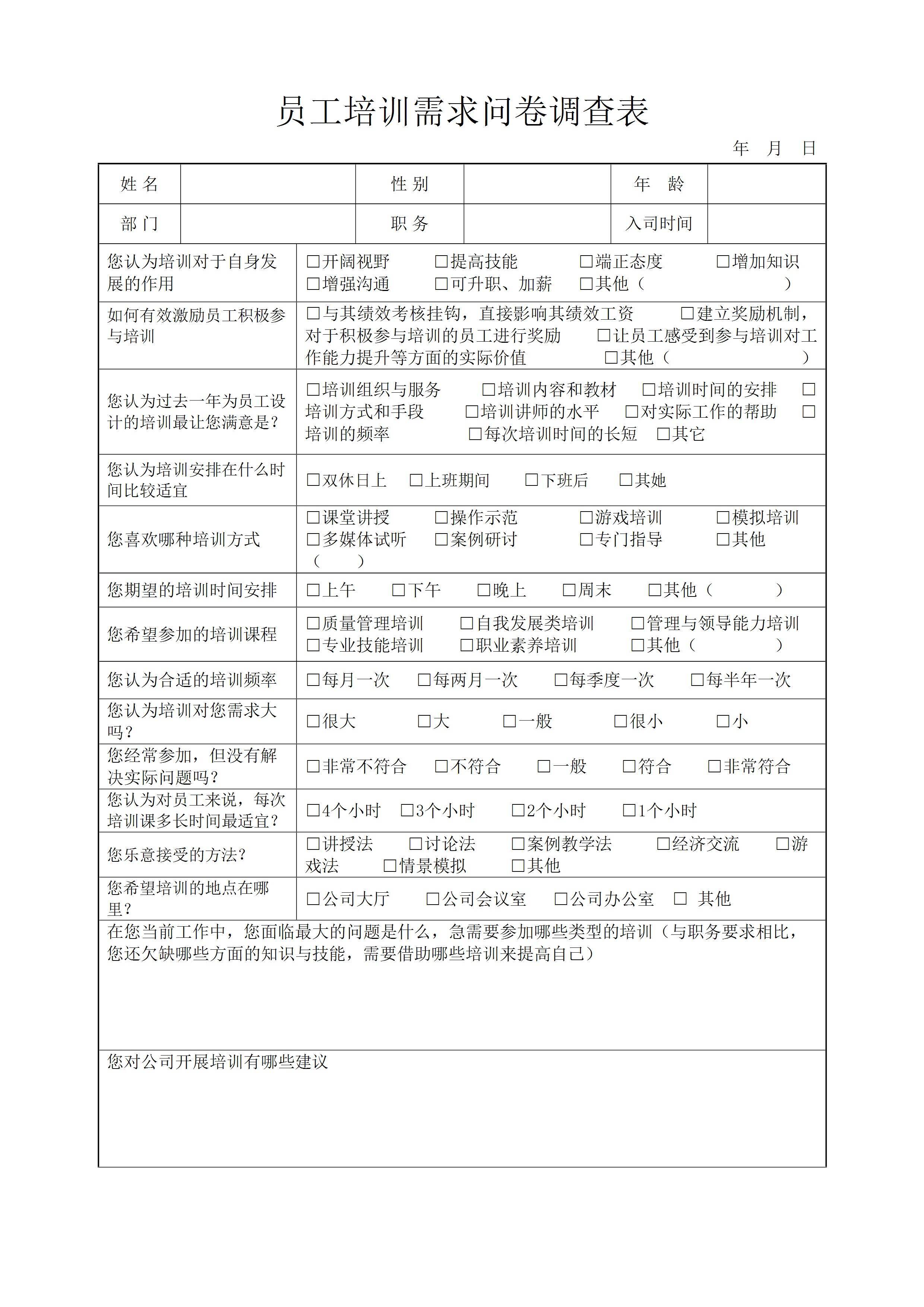 / 员工培训需求问卷调查表 每位员工都要写[文档]