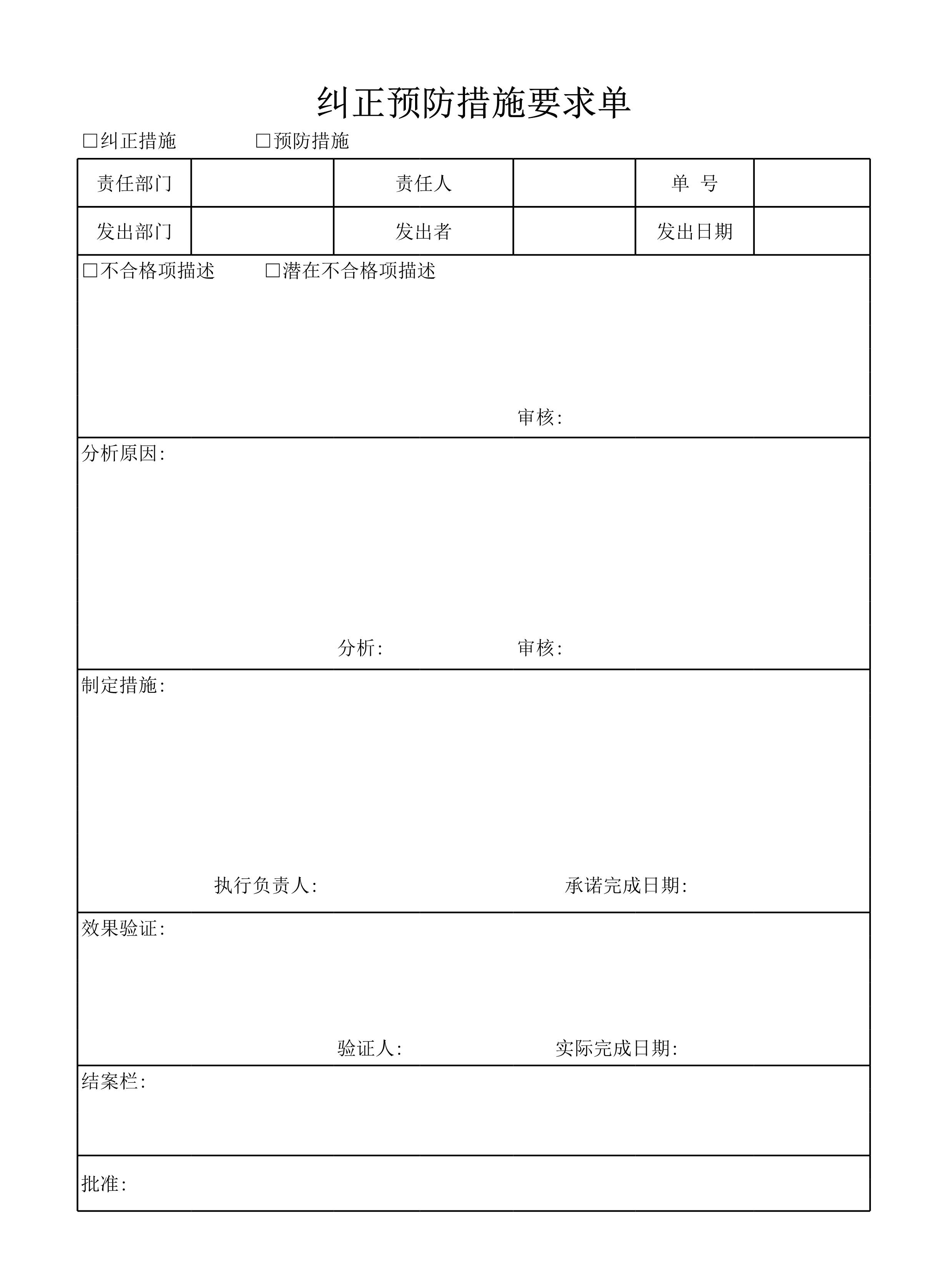 安全生产和职业卫生目标纠正预防措施要求单[表格]