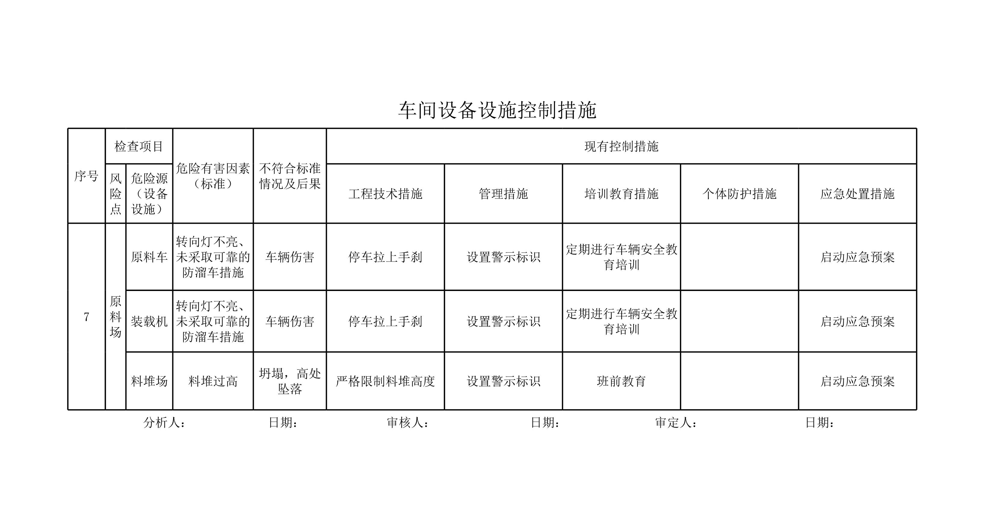 xx车间设备设施控制措施 (2)[表格]