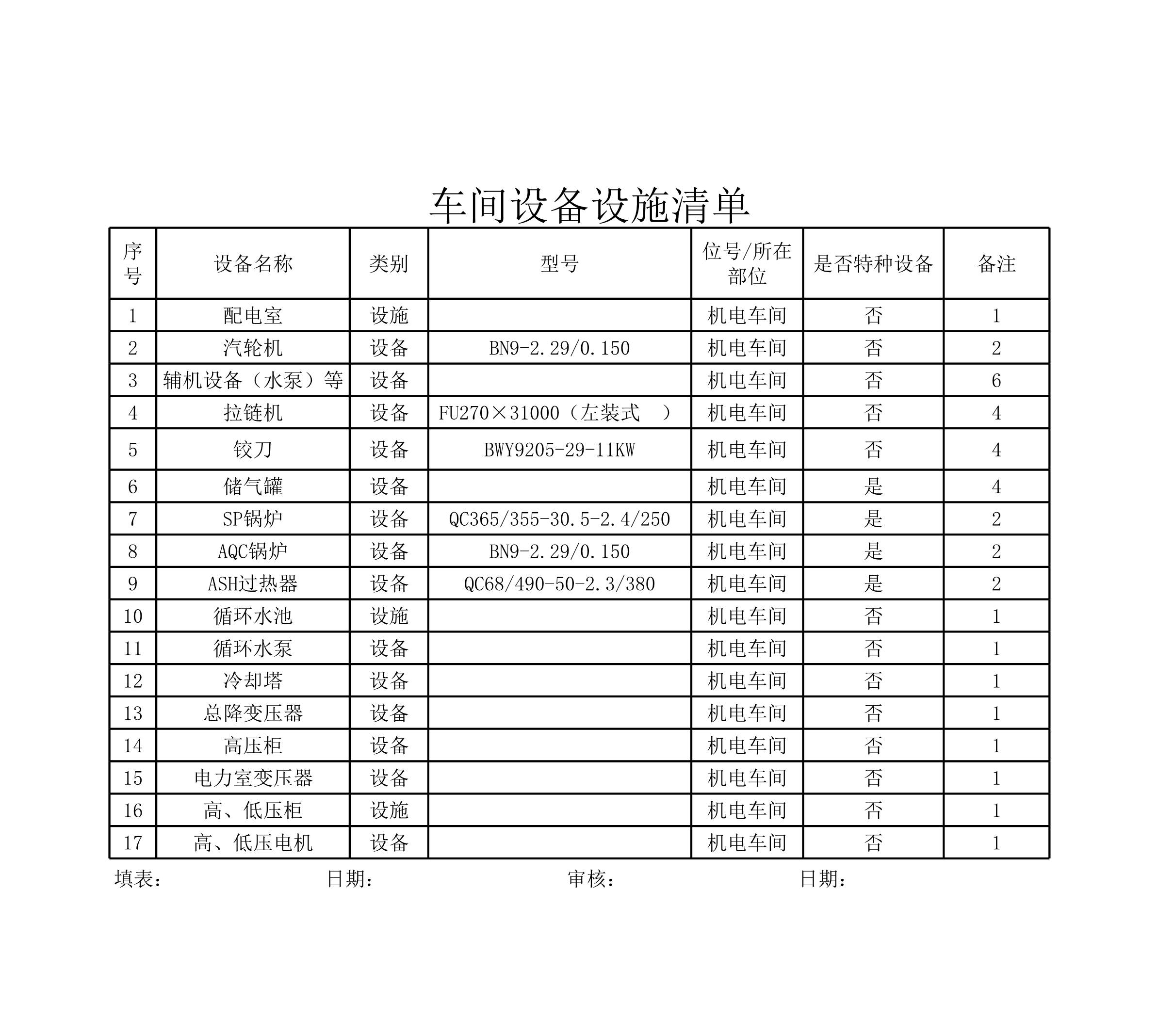 xx车间设备设施清单[表格]