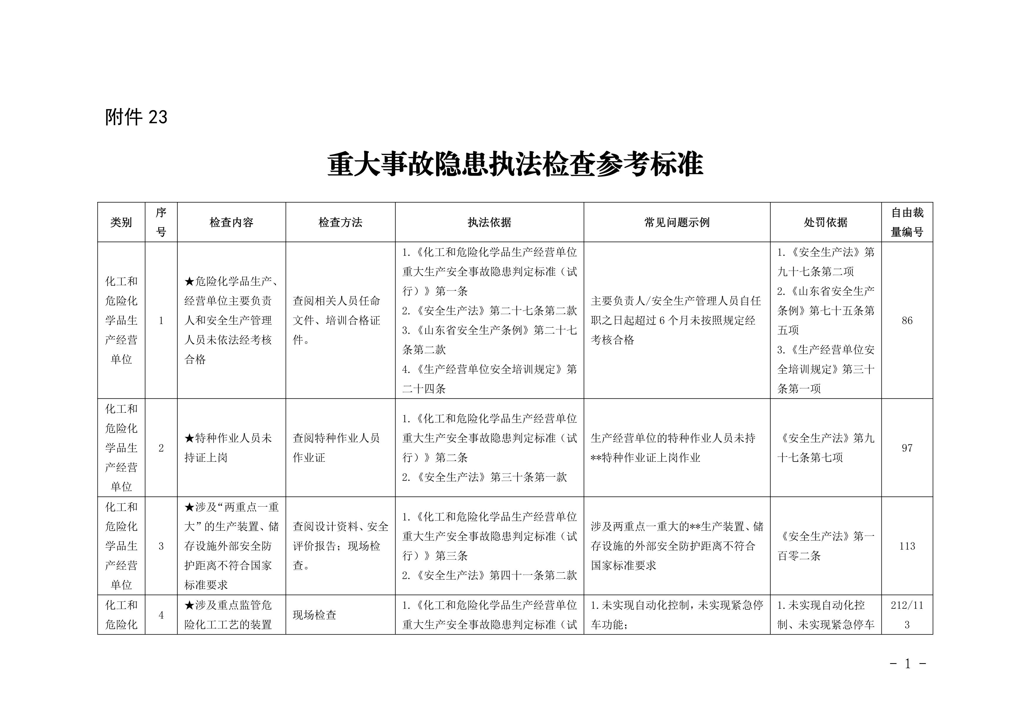 / 重大事故隐患执法检查参考标准清单[PDF]