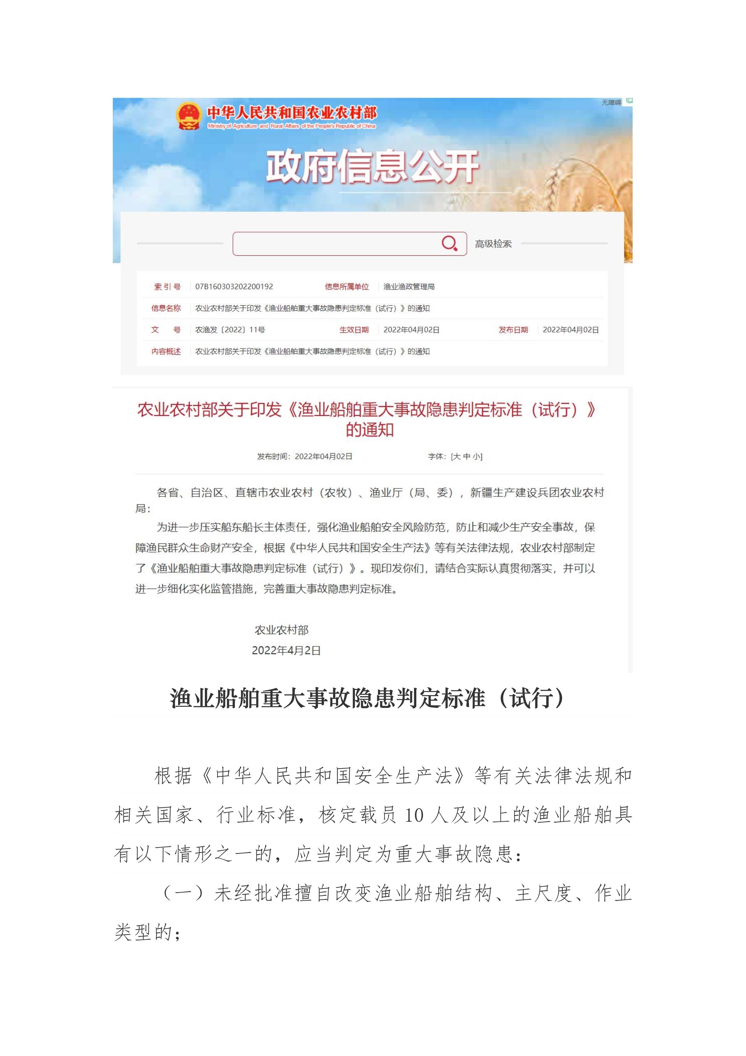/ 渔业船舶重大事故隐患判定标准试行农渔发2022 11号[PDF]