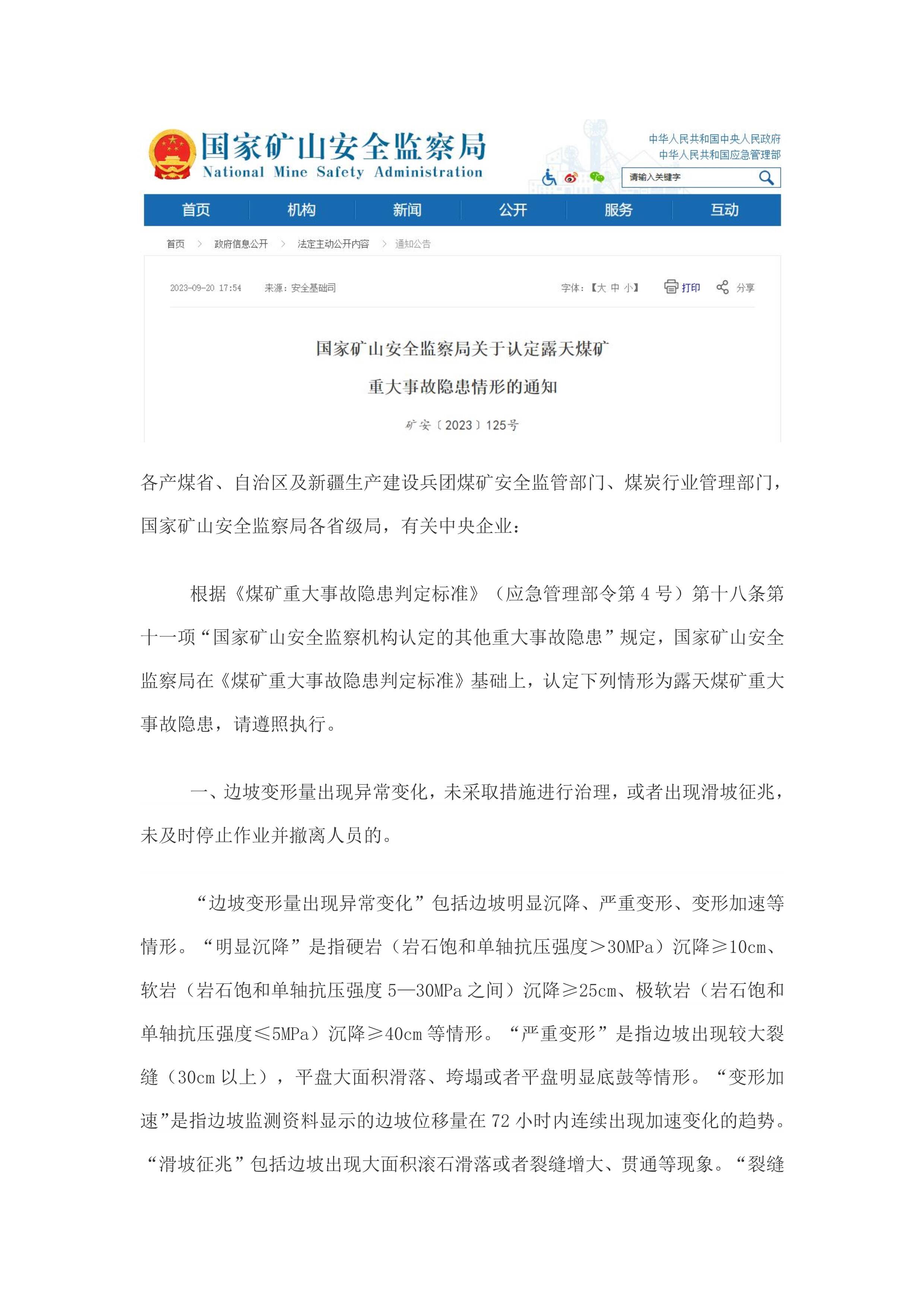 / 露天煤矿重大事故隐患的情形认定矿安[2023]125号[PDF]