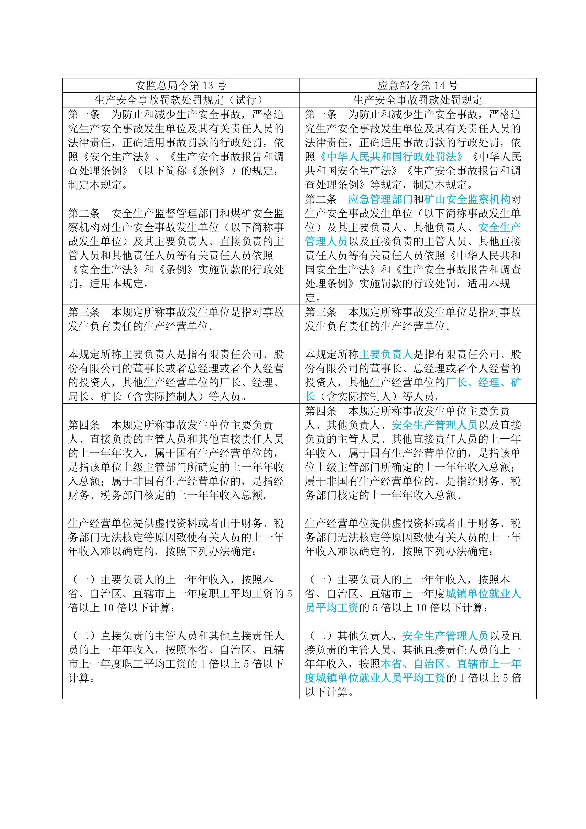 生产安全事故罚款处罚规定修改对照表[PDF]