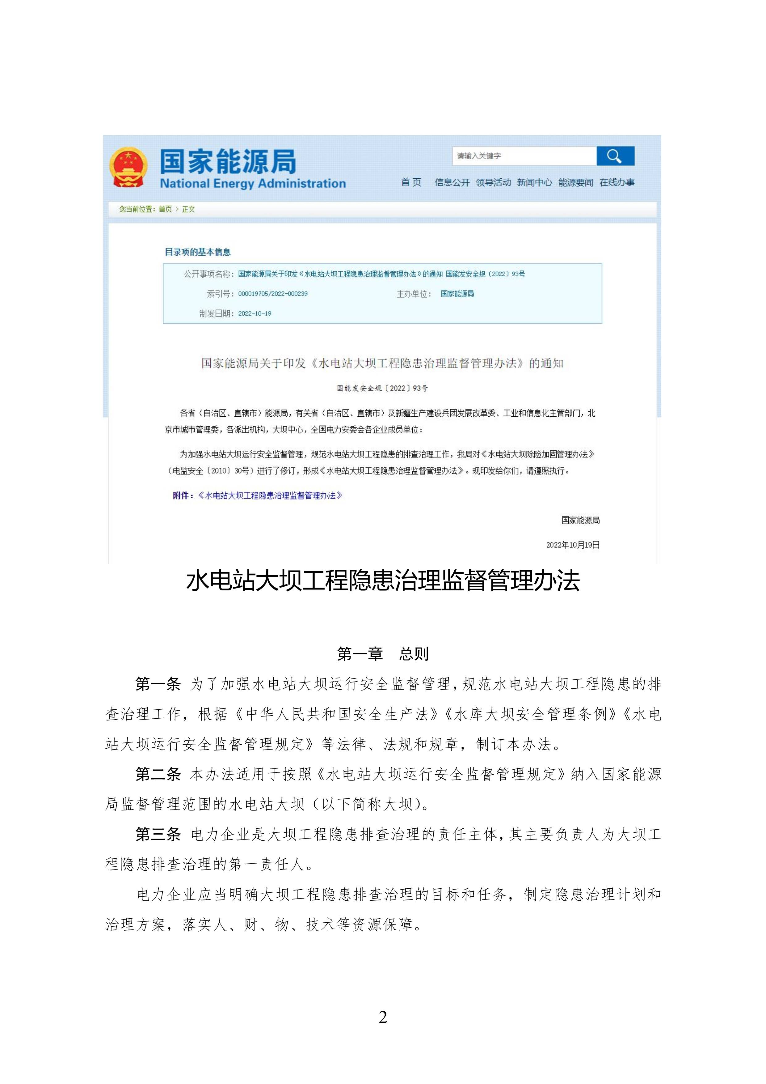 水电站大坝工程隐患治理监督管理办法国能发安全规2022 93号[PDF]