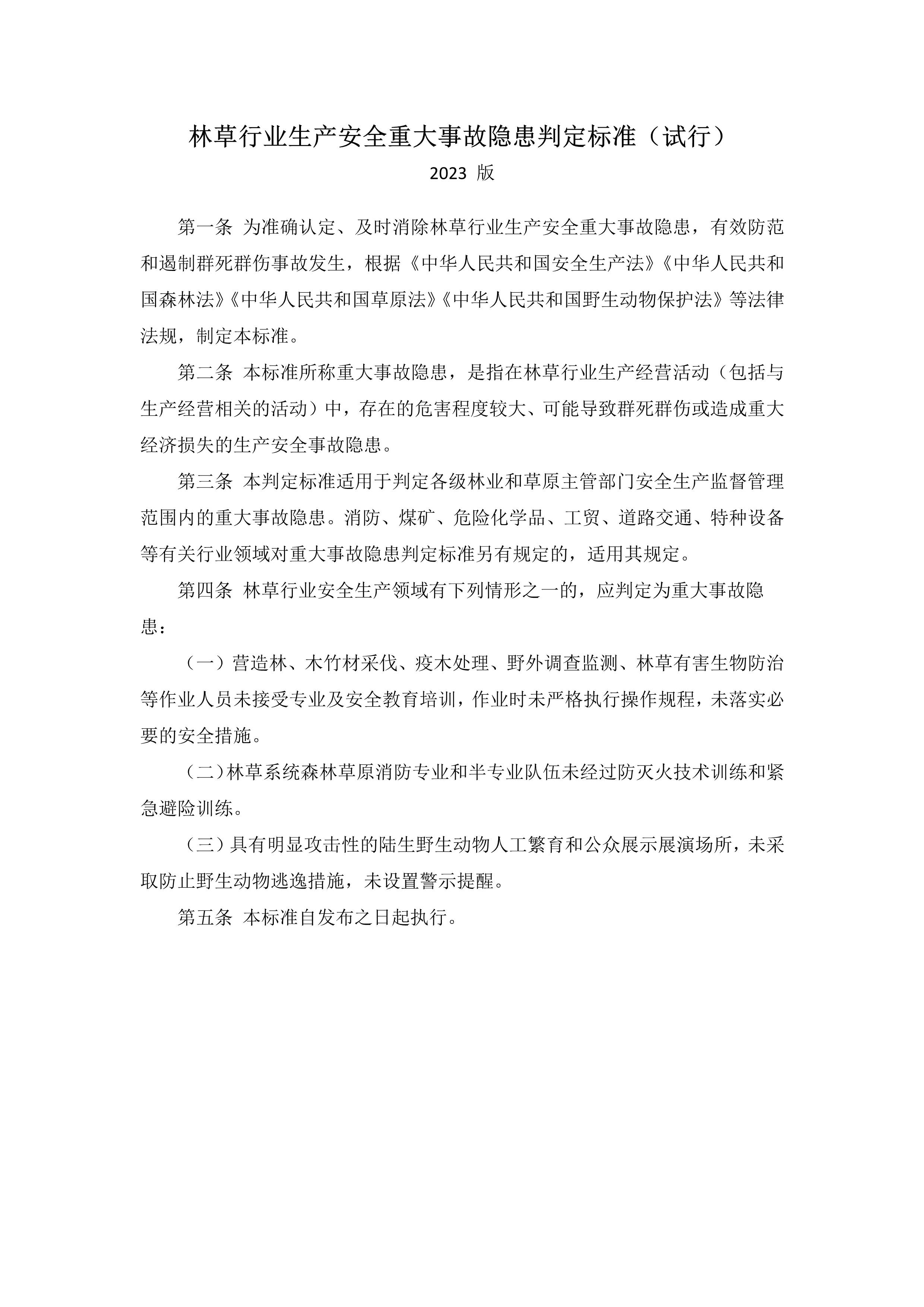 林草行业生产安全重大事故隐患判定标准试行2023[PDF]