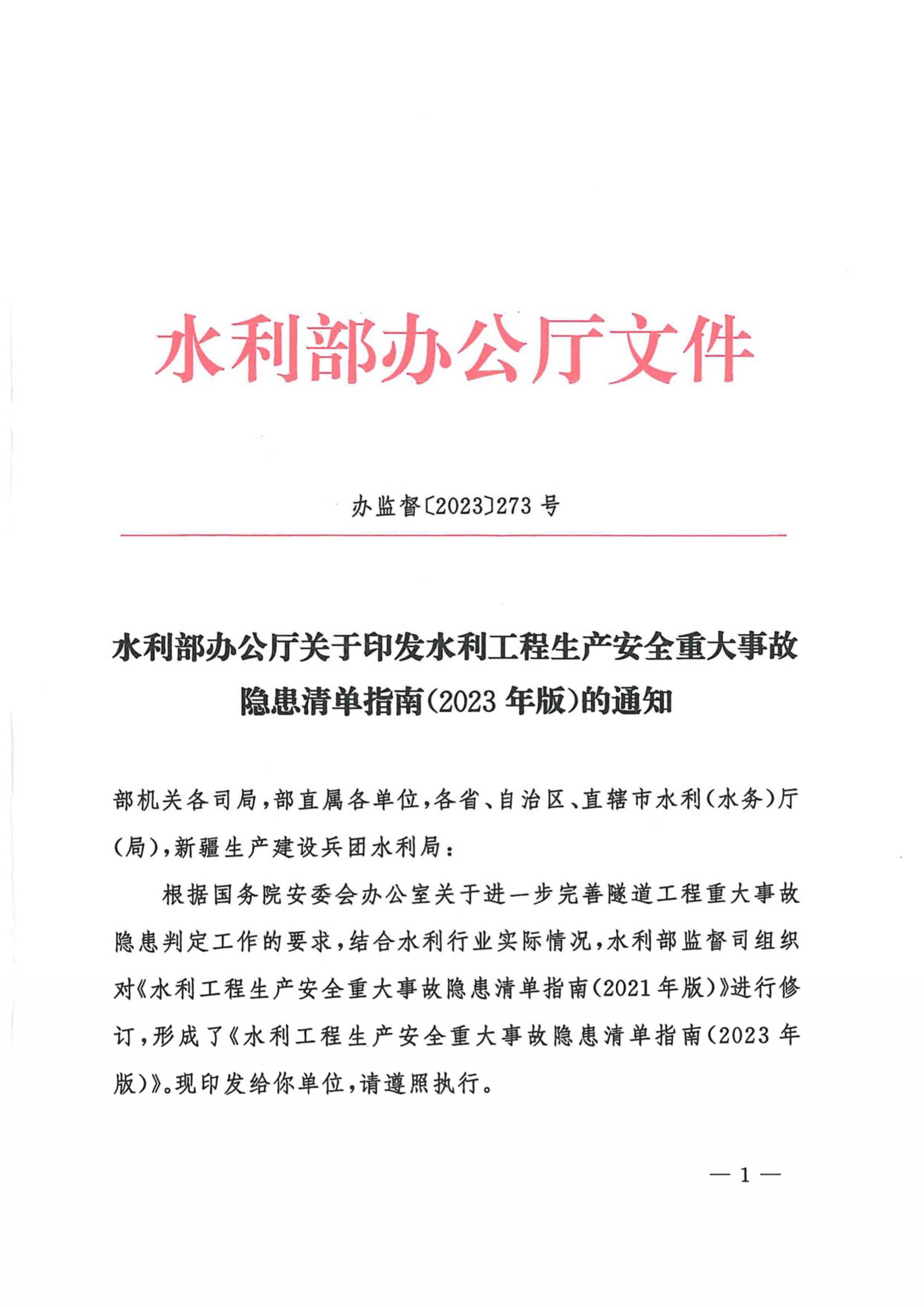 水利工程生产安全重大事故隐患清单指南2023年版办监督2021 364号[PDF]