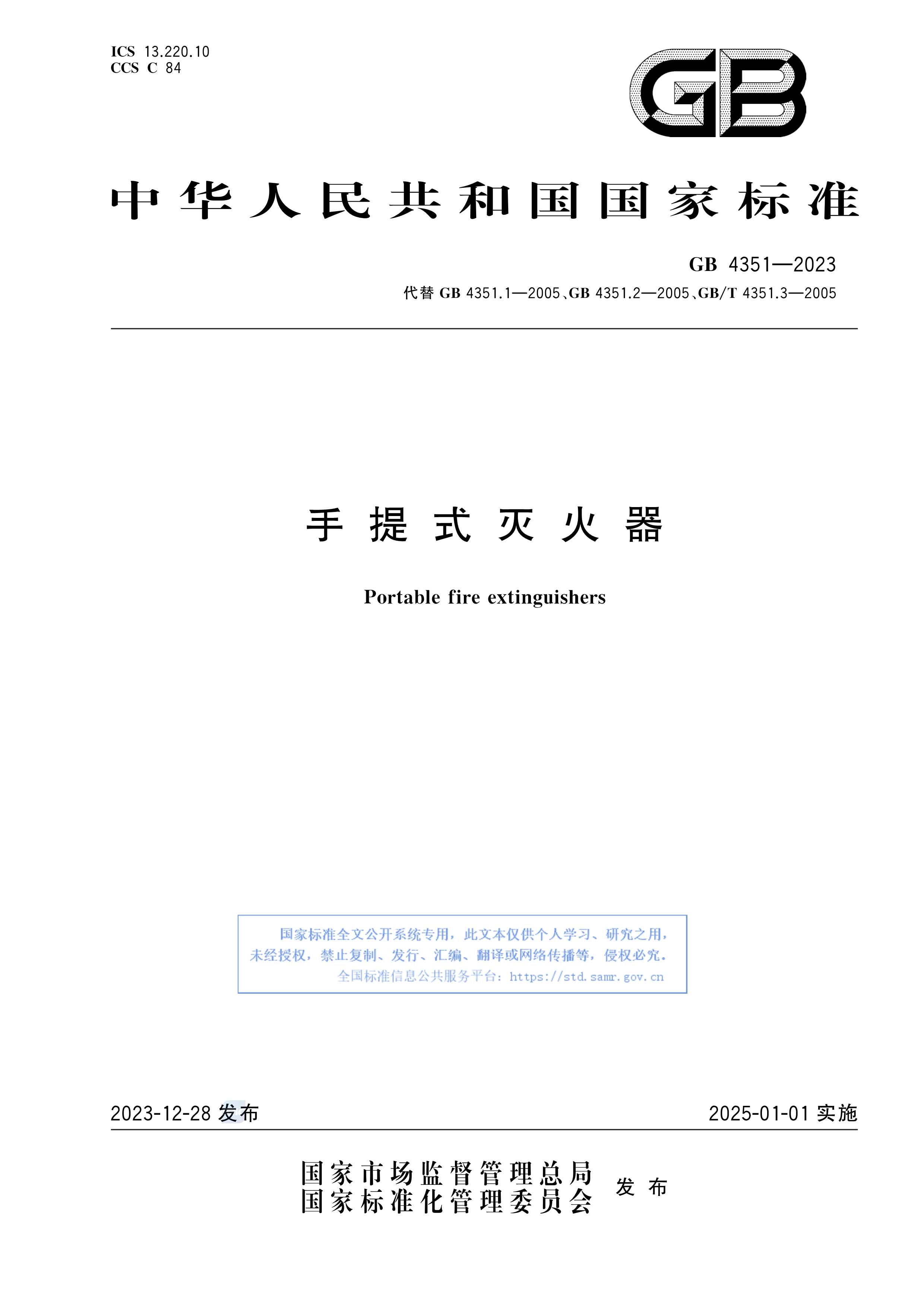/ 强制性国家标准手提式灭火器GB4351-20232025实施[PDF]