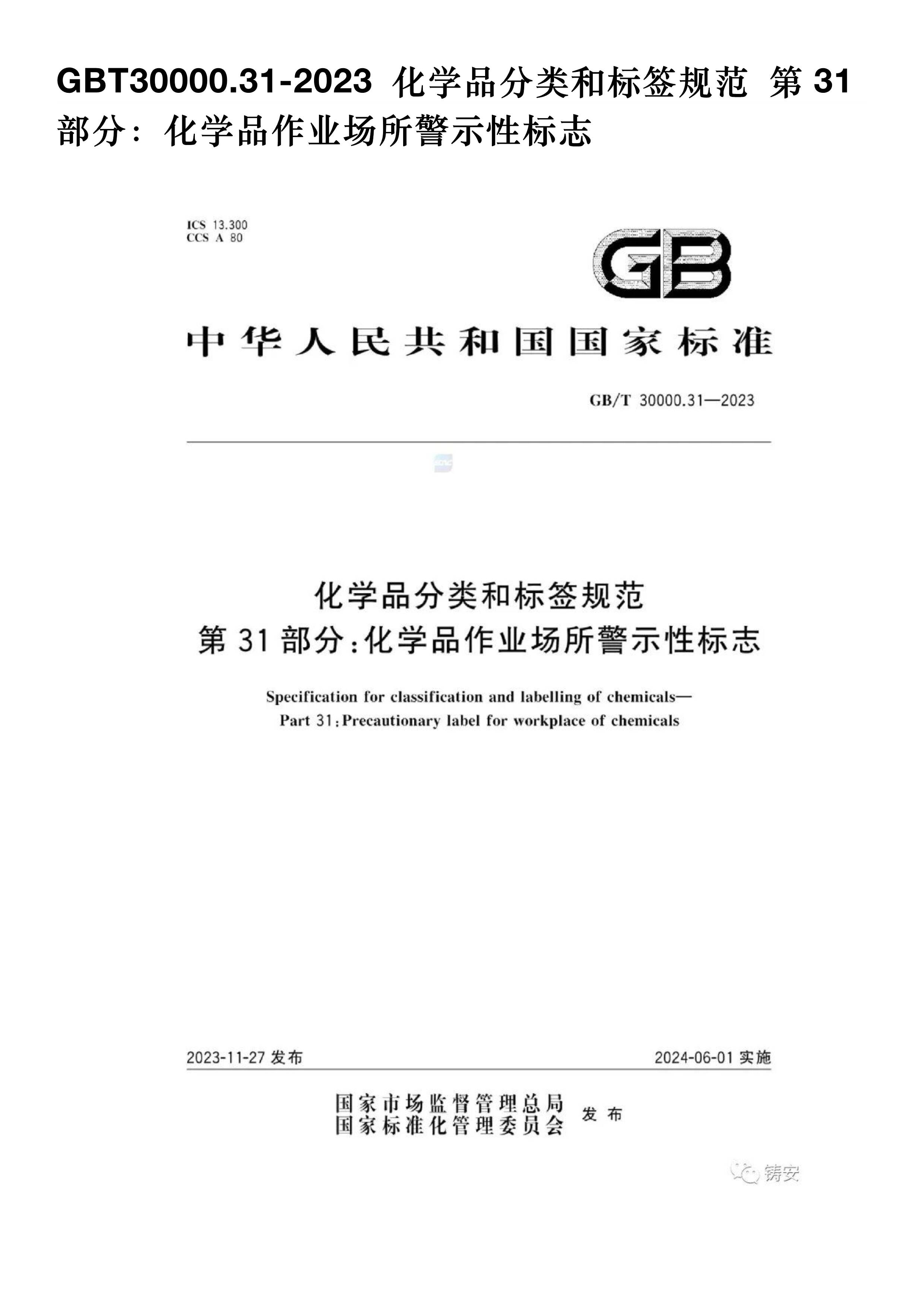 2023化学品分类和标签规范第31部分化学品作业场所警示性标志[PDF]