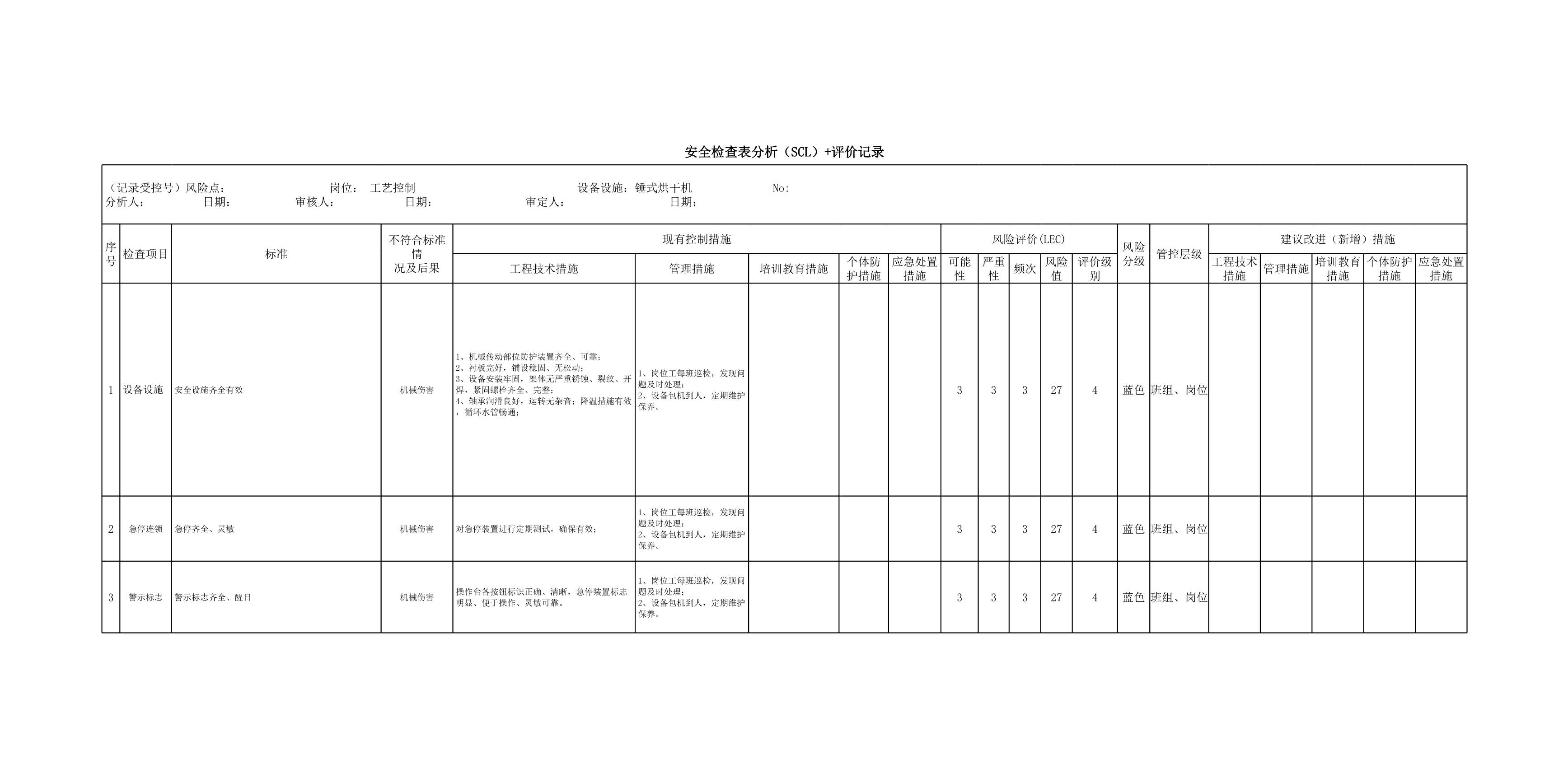 锤式烘干机SCL评价记录[表格]