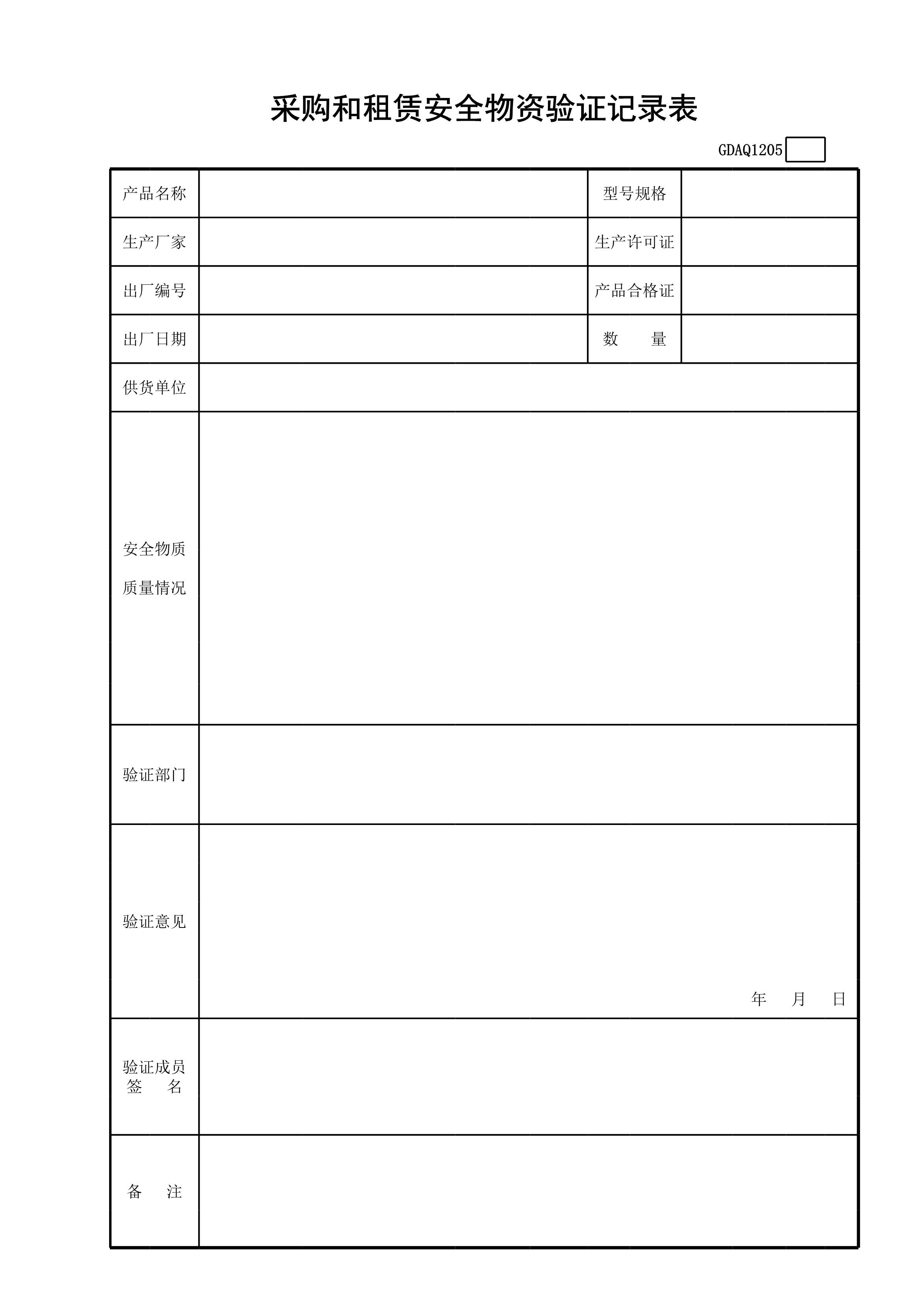 / 采购和租赁安全物资验证记录表GDAQ1205[表格]