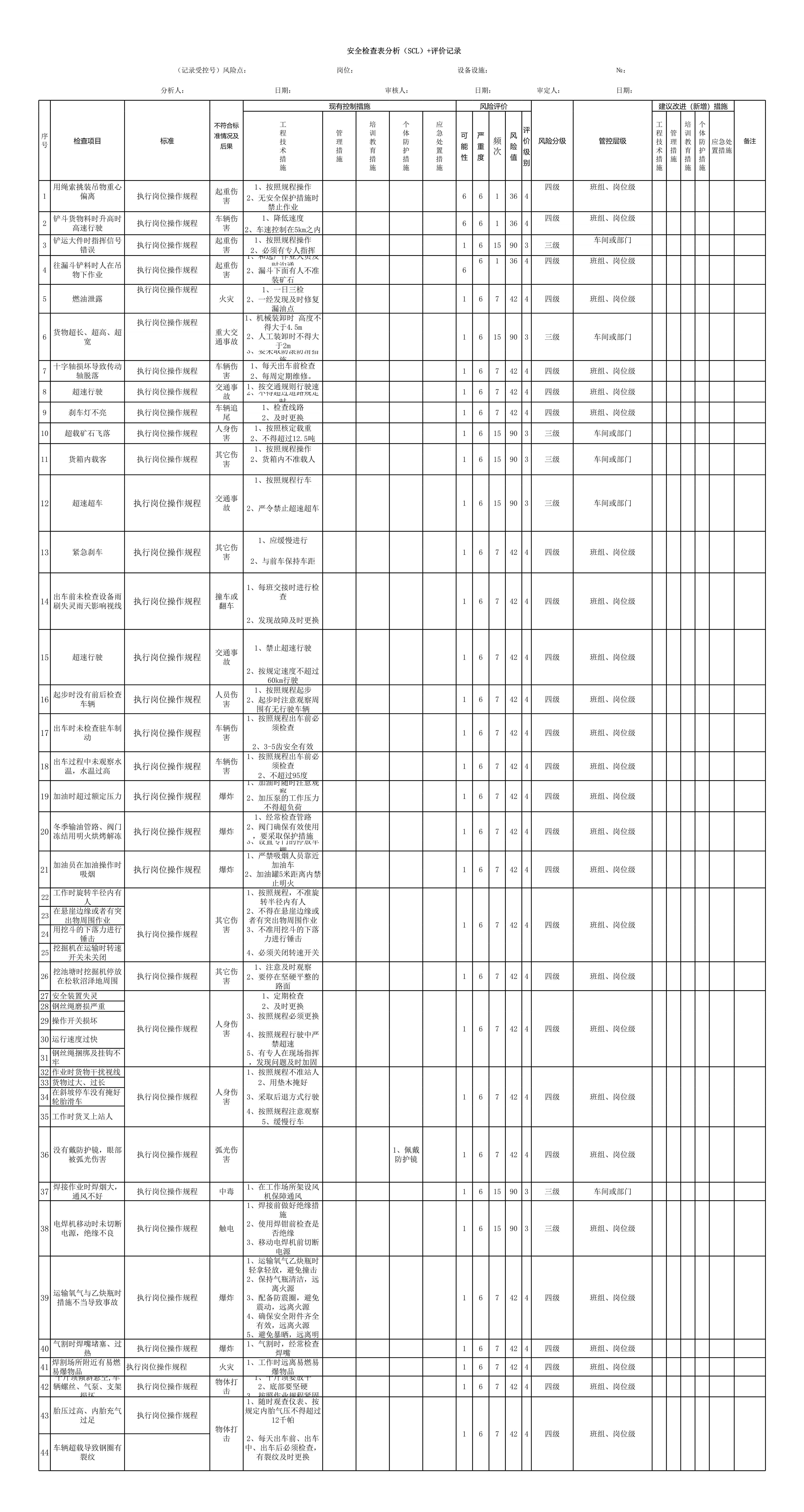/ 车队安全检查分析SCL评价记录表[表格]