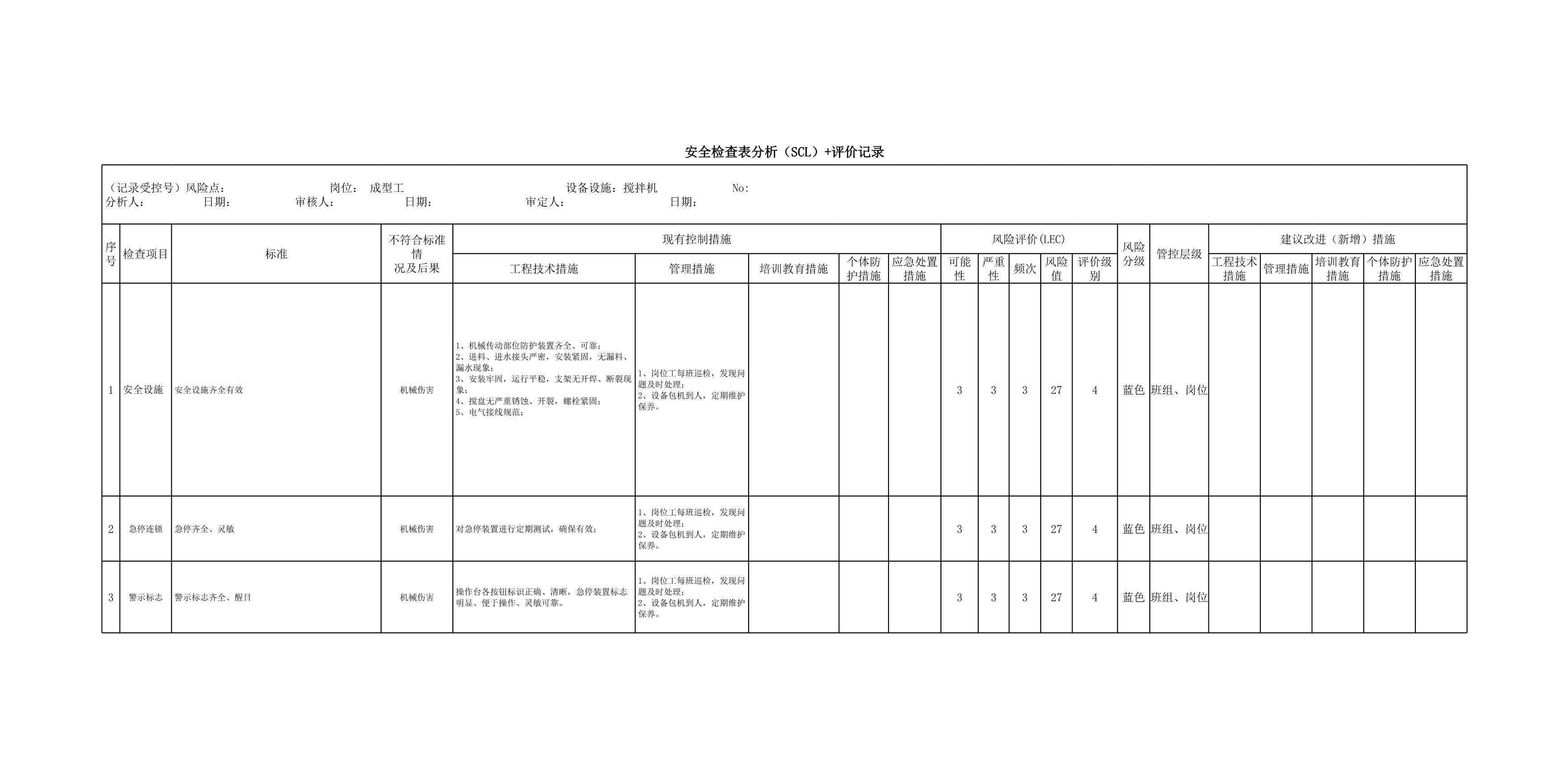 车队安全检查分析SCL评价记录表[表格]