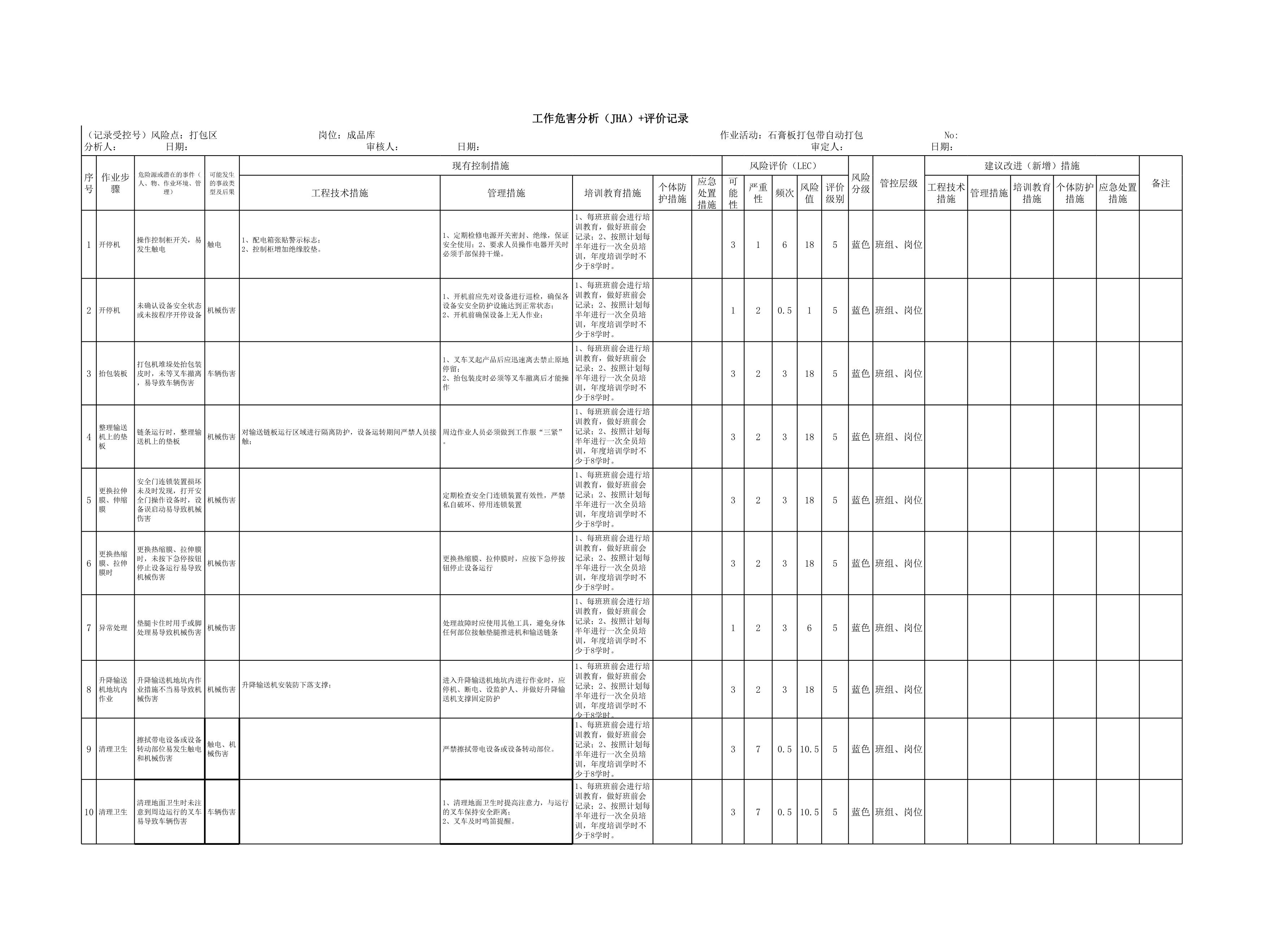 氨纶企业危险源辨识与风险评价信息一览表[表格]