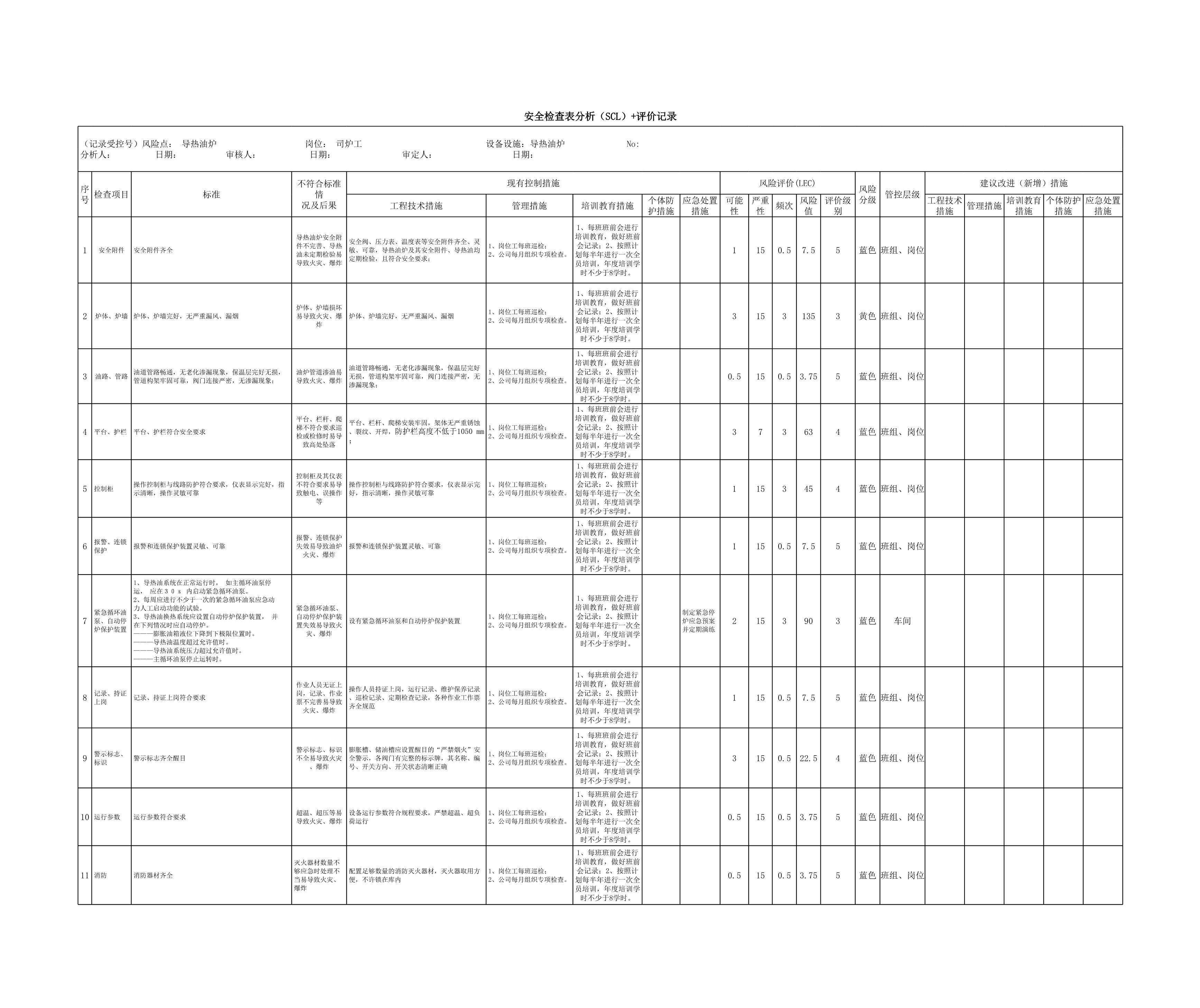导热油炉分析SCL评价记录[表格]
