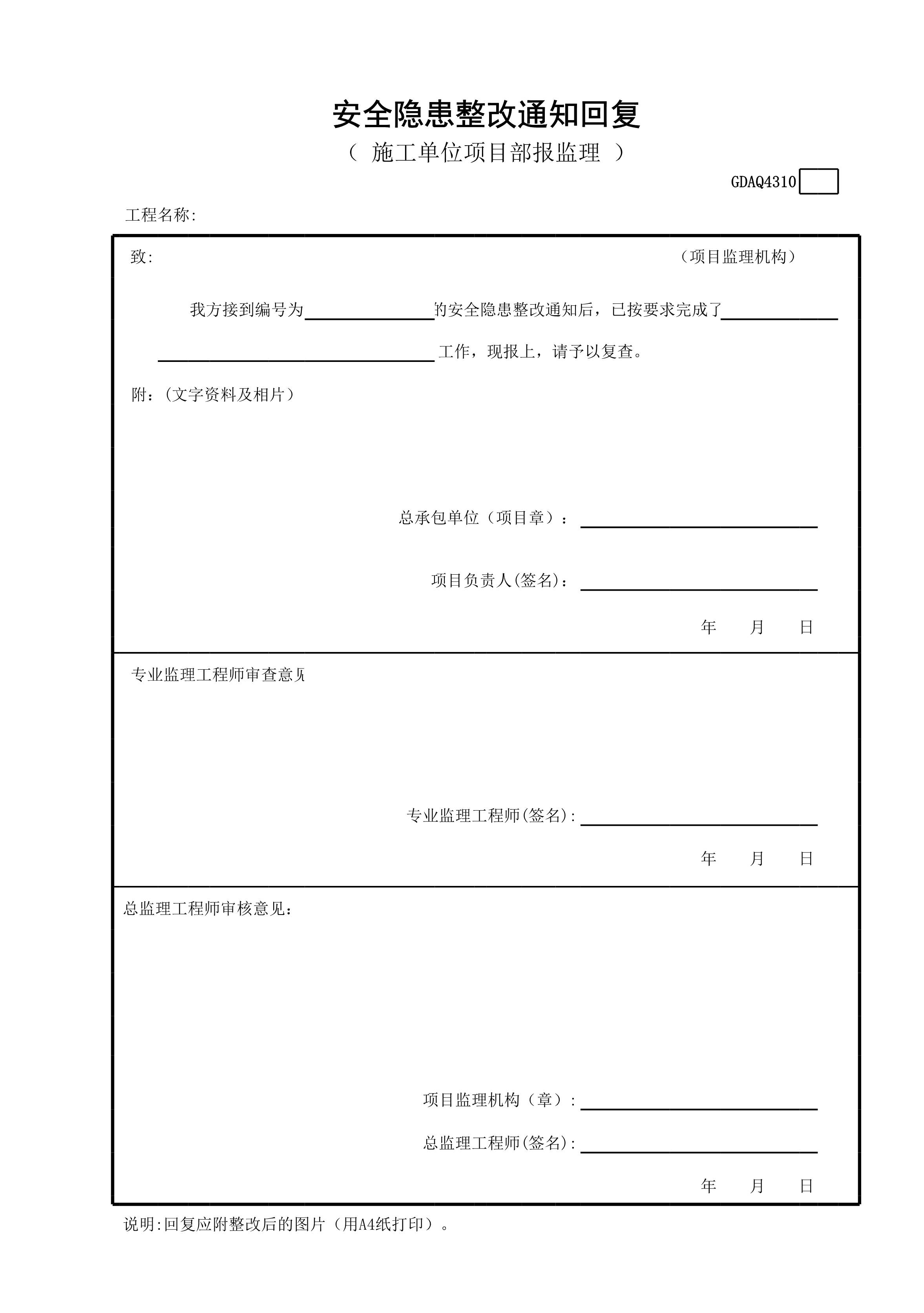 / 安全隐患整改通知回复GDAQ4310[表格]