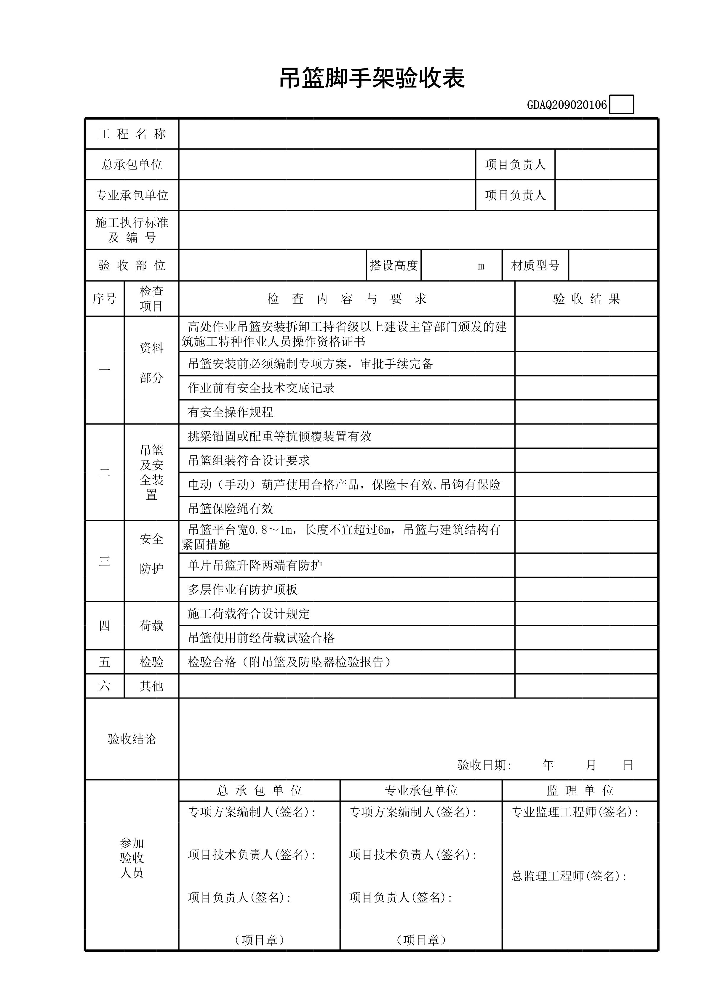 / 吊篮脚手架验收表GDAQ209020106[表格]