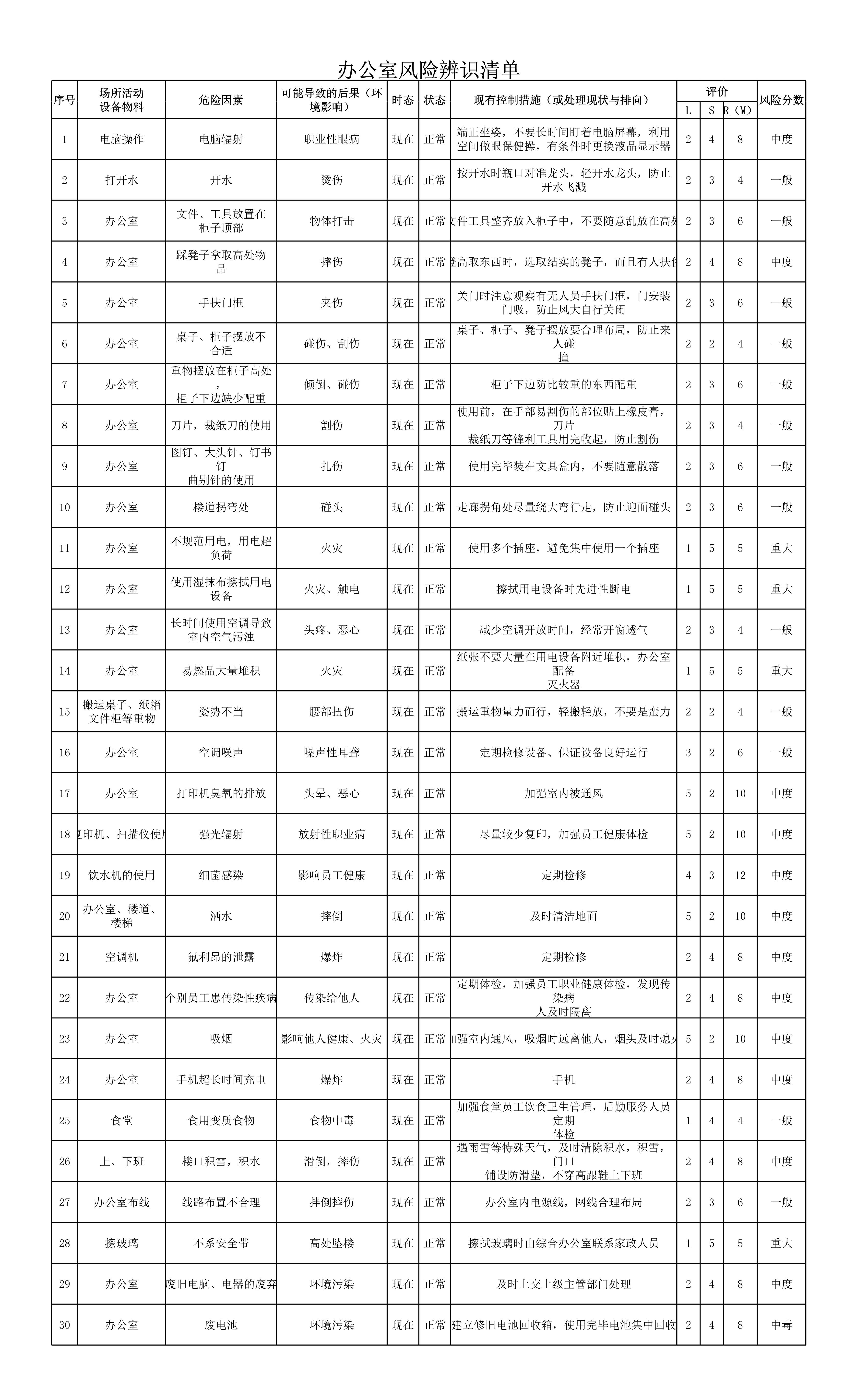 / 办公区域危险源辨识与风险评价清单[表格]