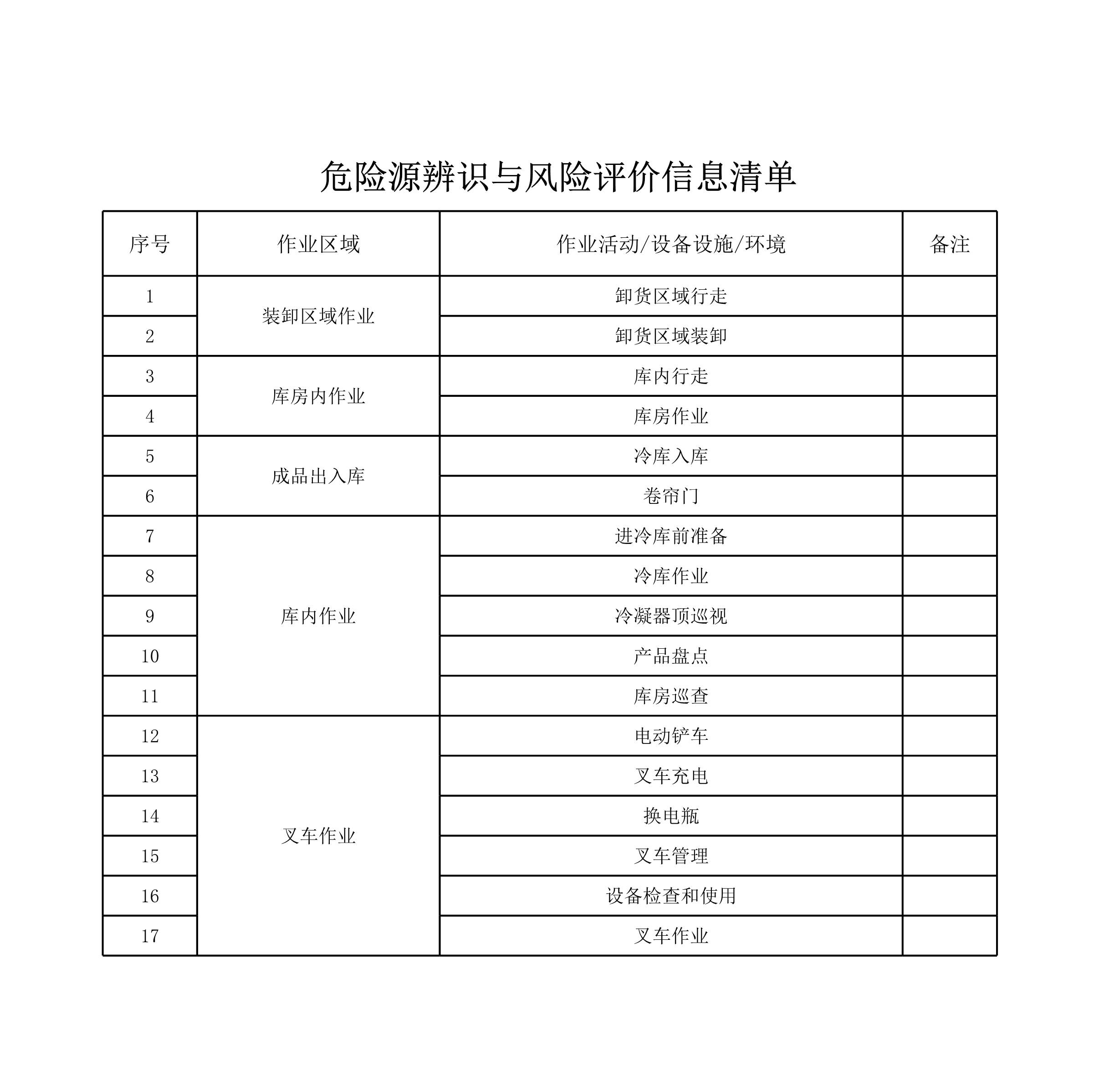 / 仓储科危险源辨识与风险评价信息表[表格]