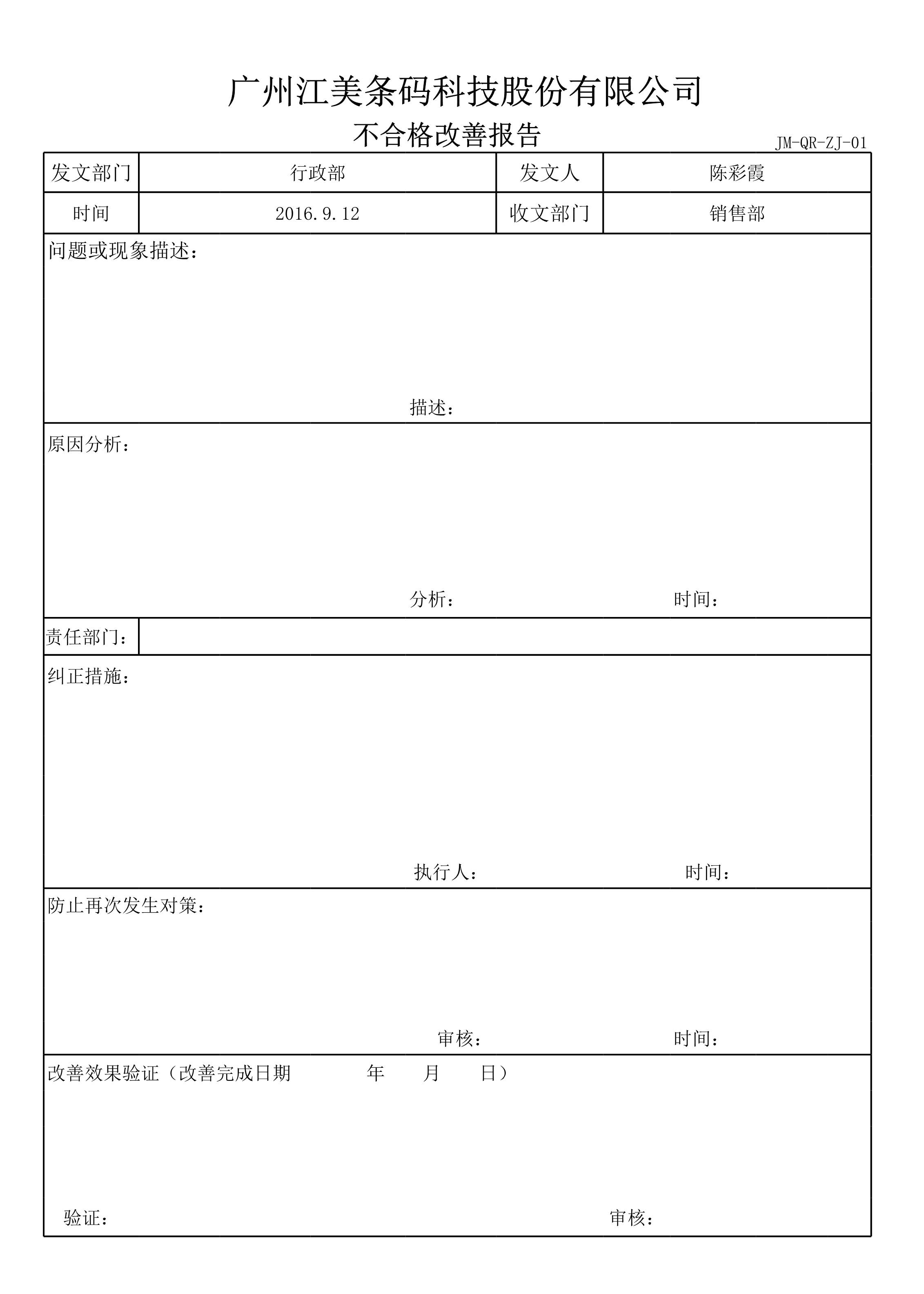 不合格改善报告[表格]