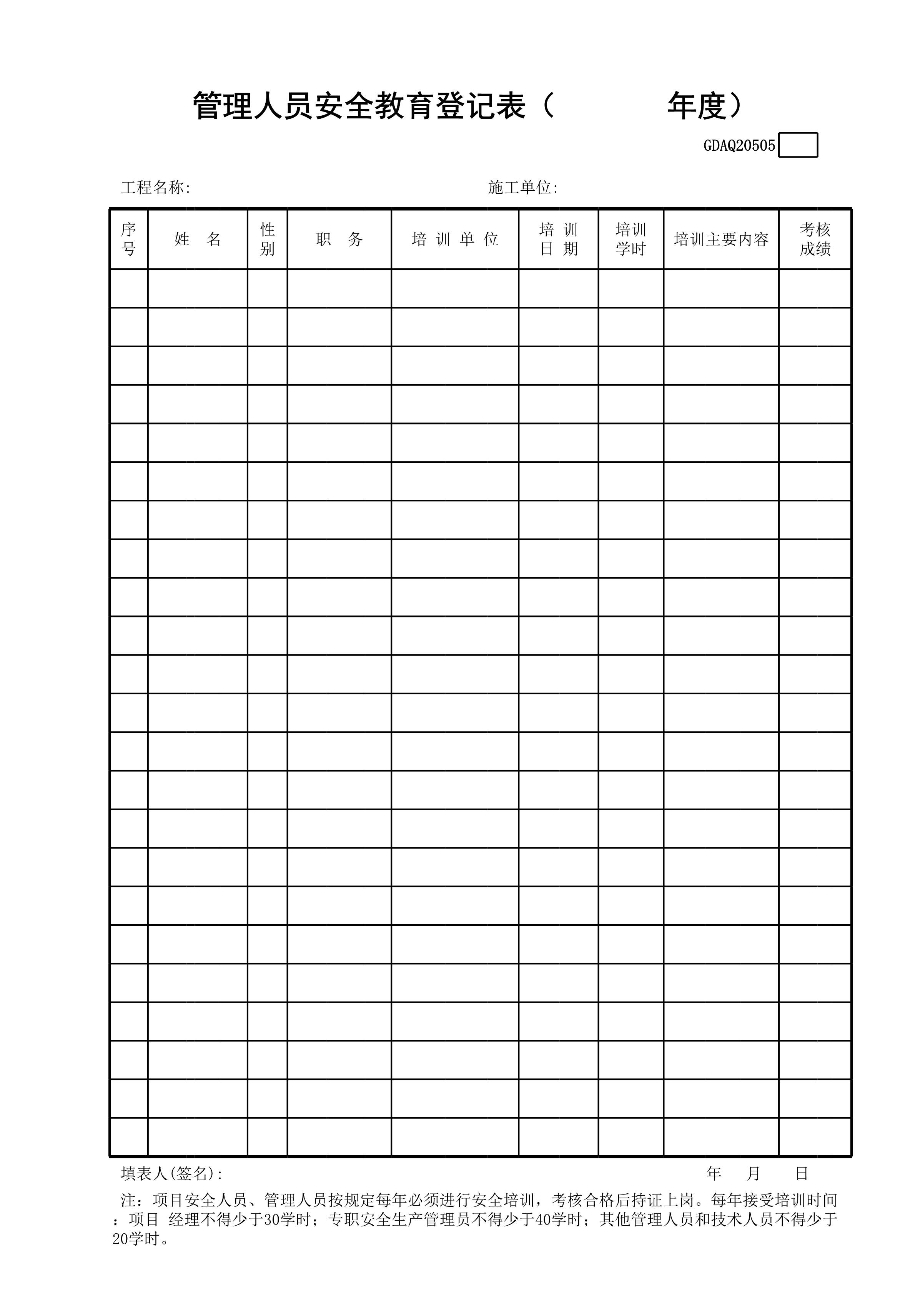 / 管理人员安全教育登记表GDAQ20505[表格]