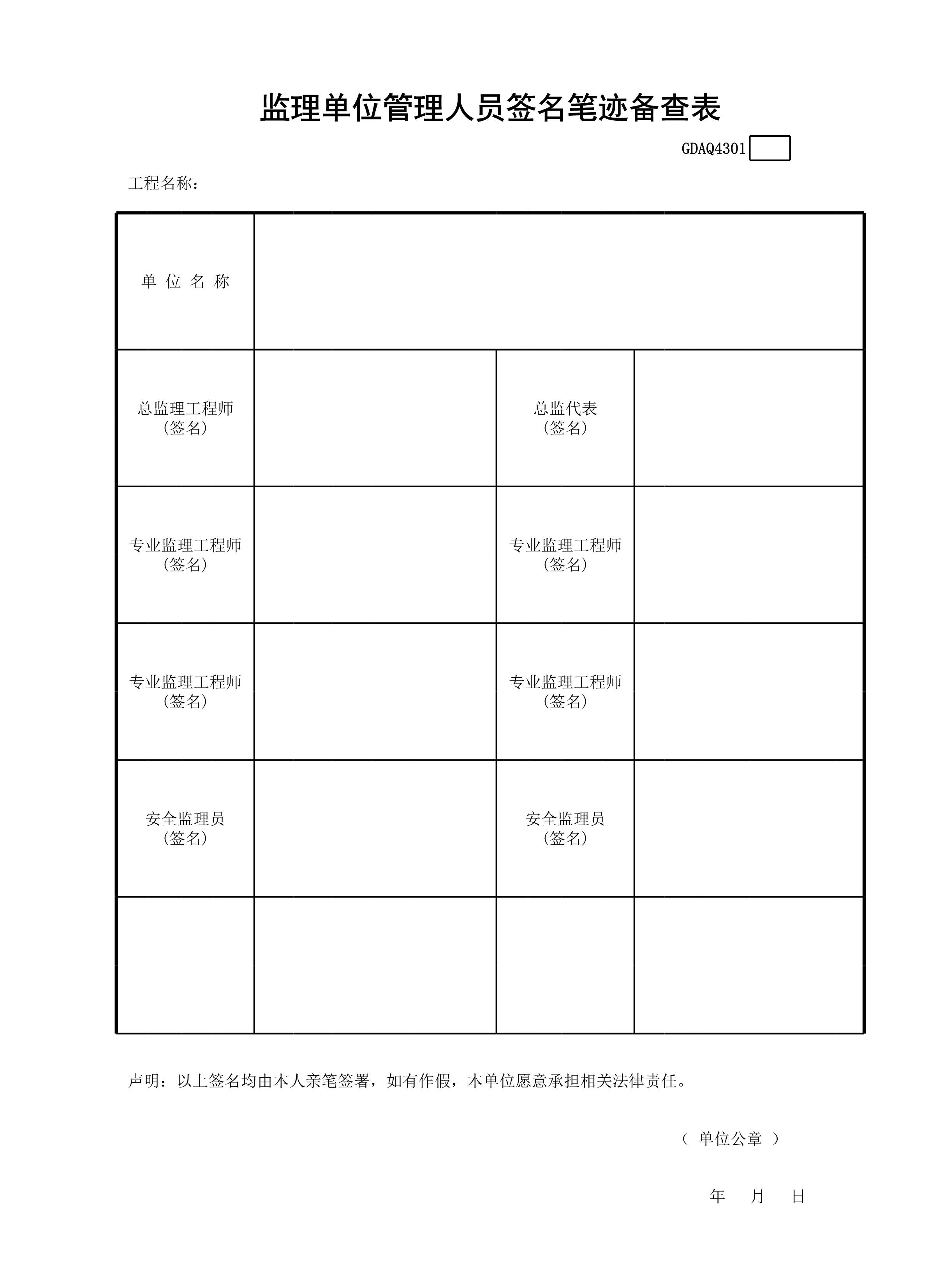 监理单位管理人员签名笔迹备查表GDAQ4301[表格]