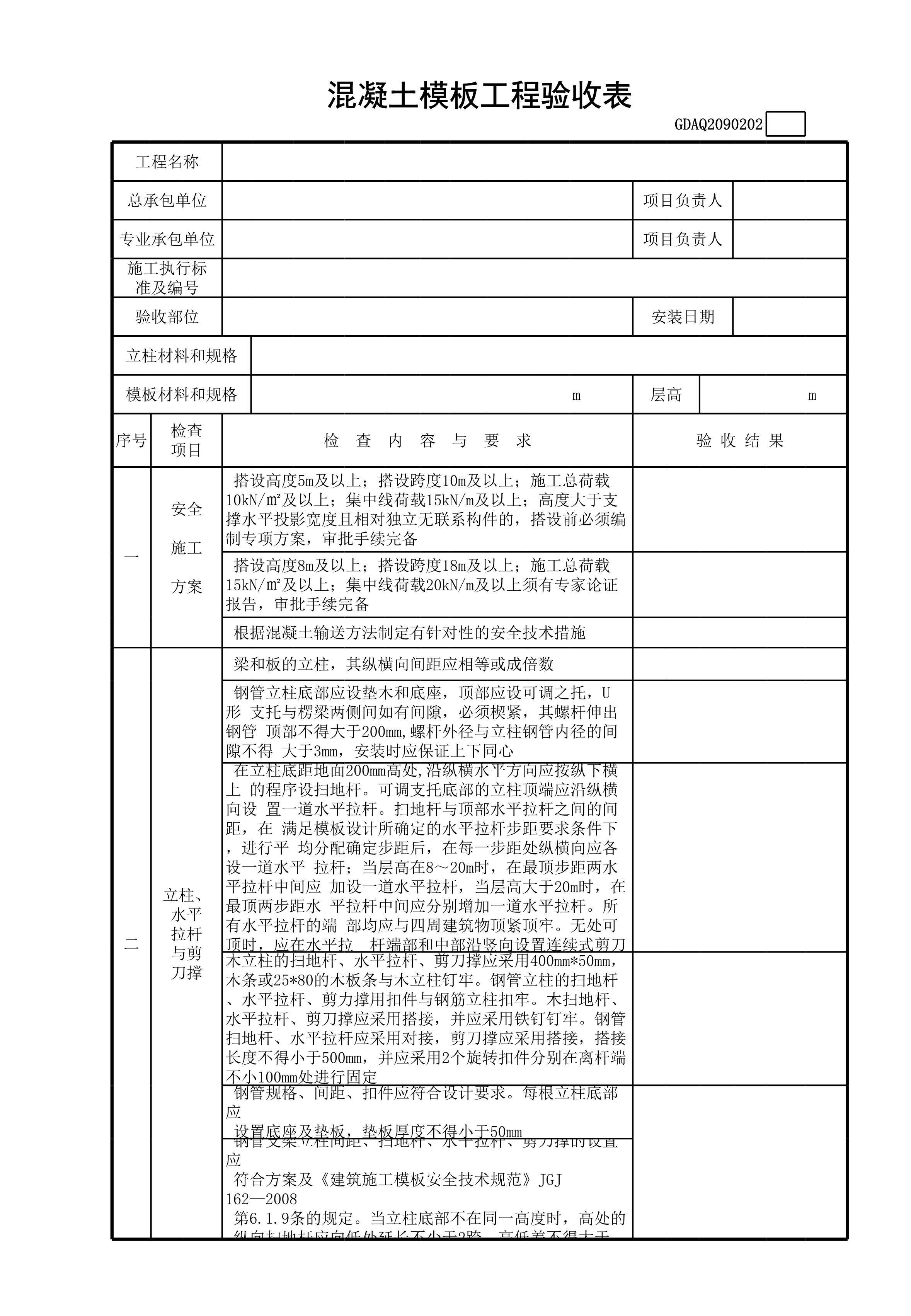 / 混凝土模板工程验收表含续表GDAQ2090202[表格]